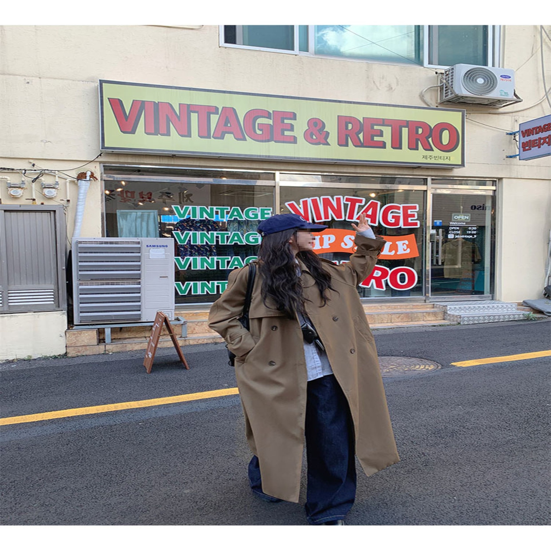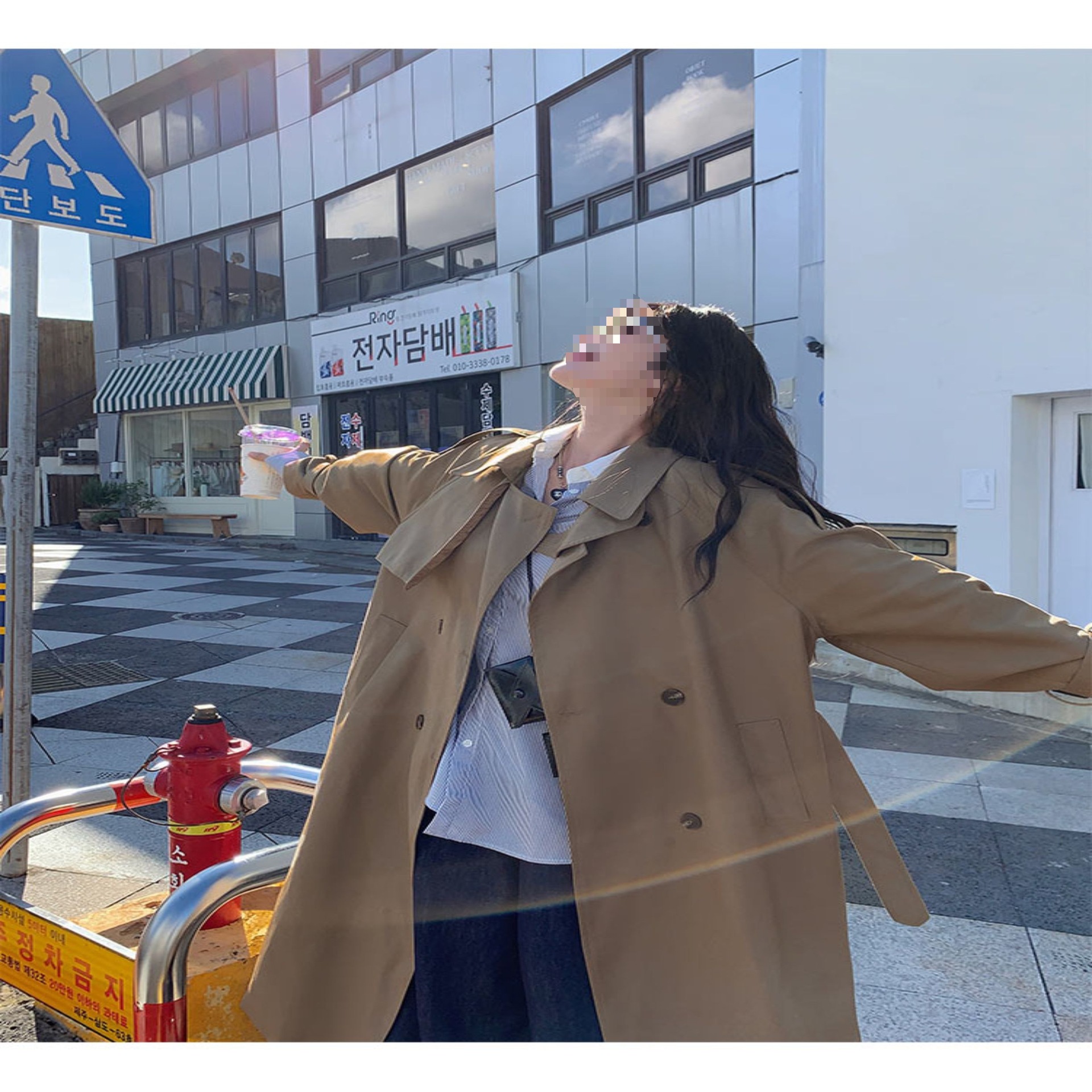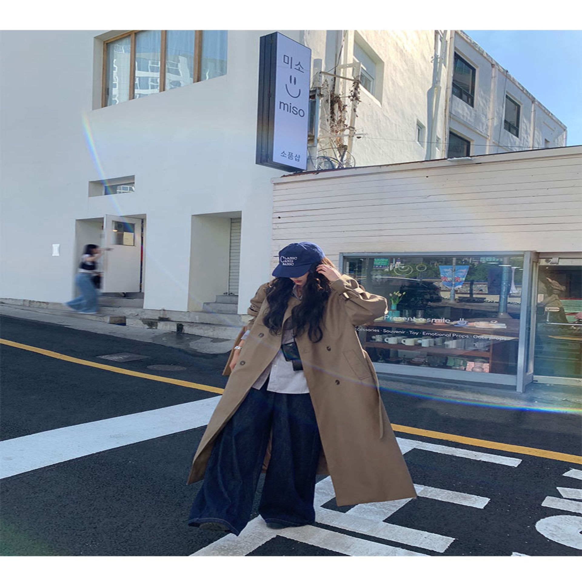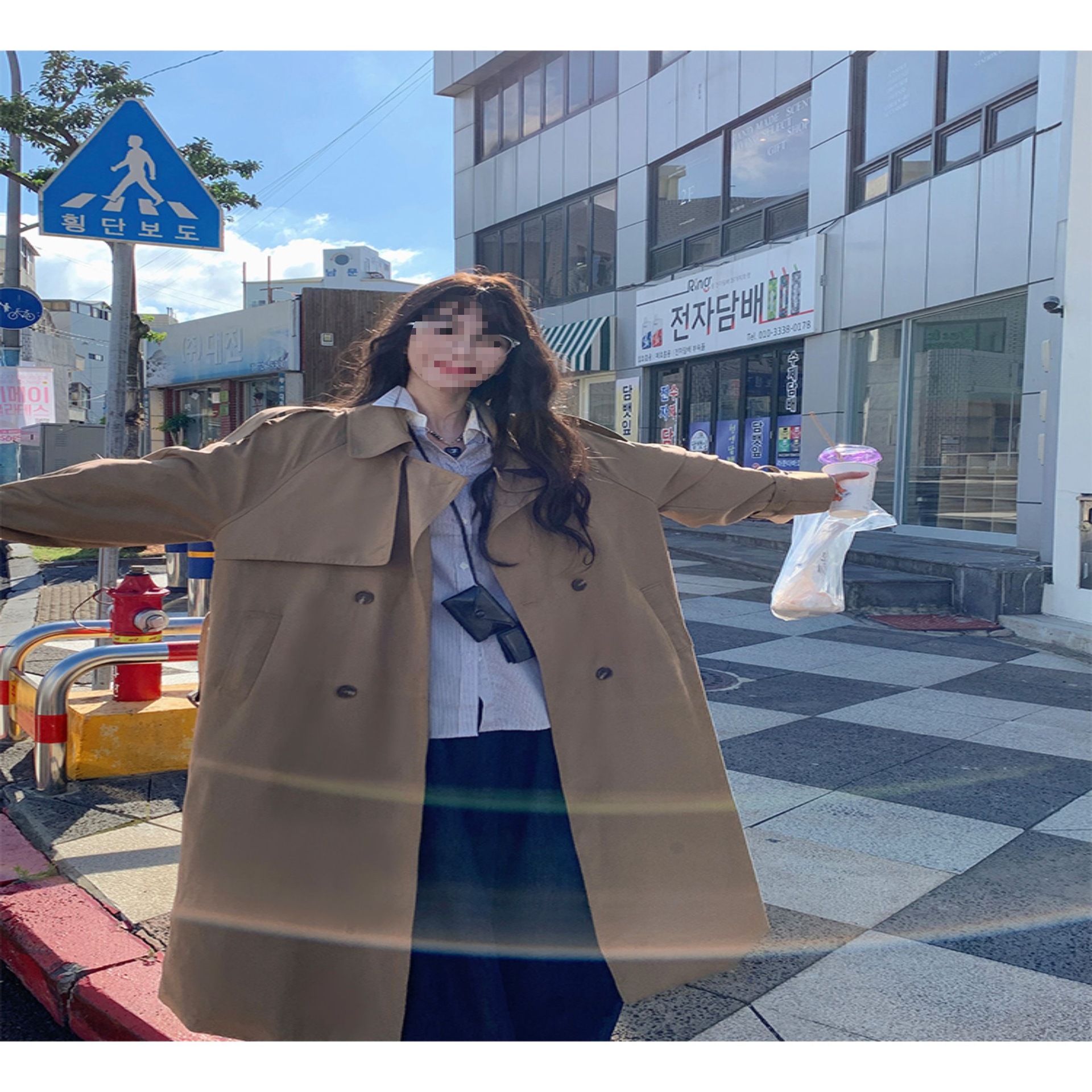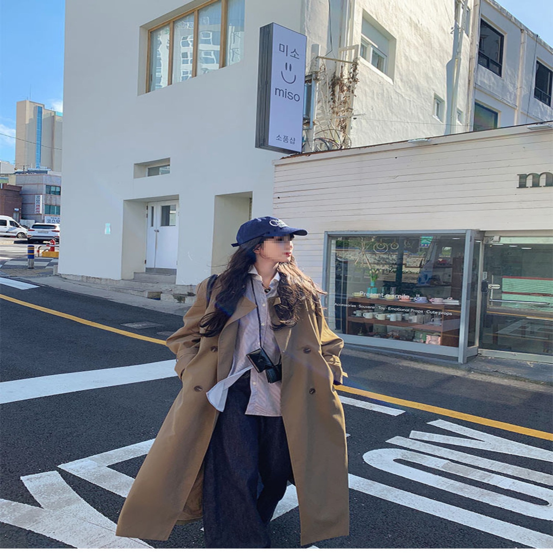 夏蓝汐雨SMBL RAIN宽松系带过膝长款大衣复古显瘦英伦风衣外套女