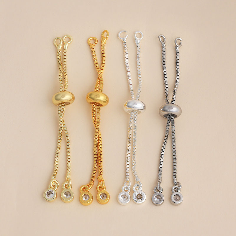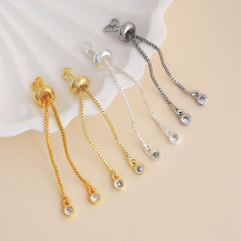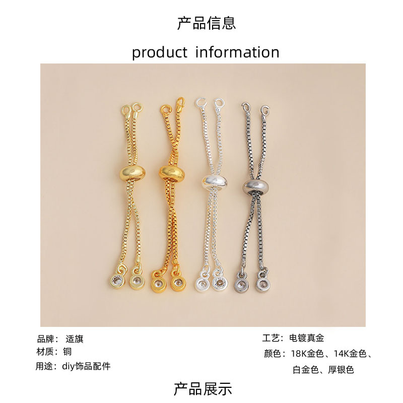 保色硅胶抽拉链可调节锆石延长链铜镀18K真金diy手链项链材料批发