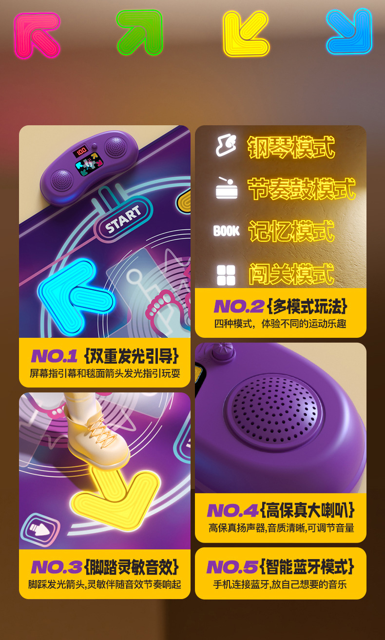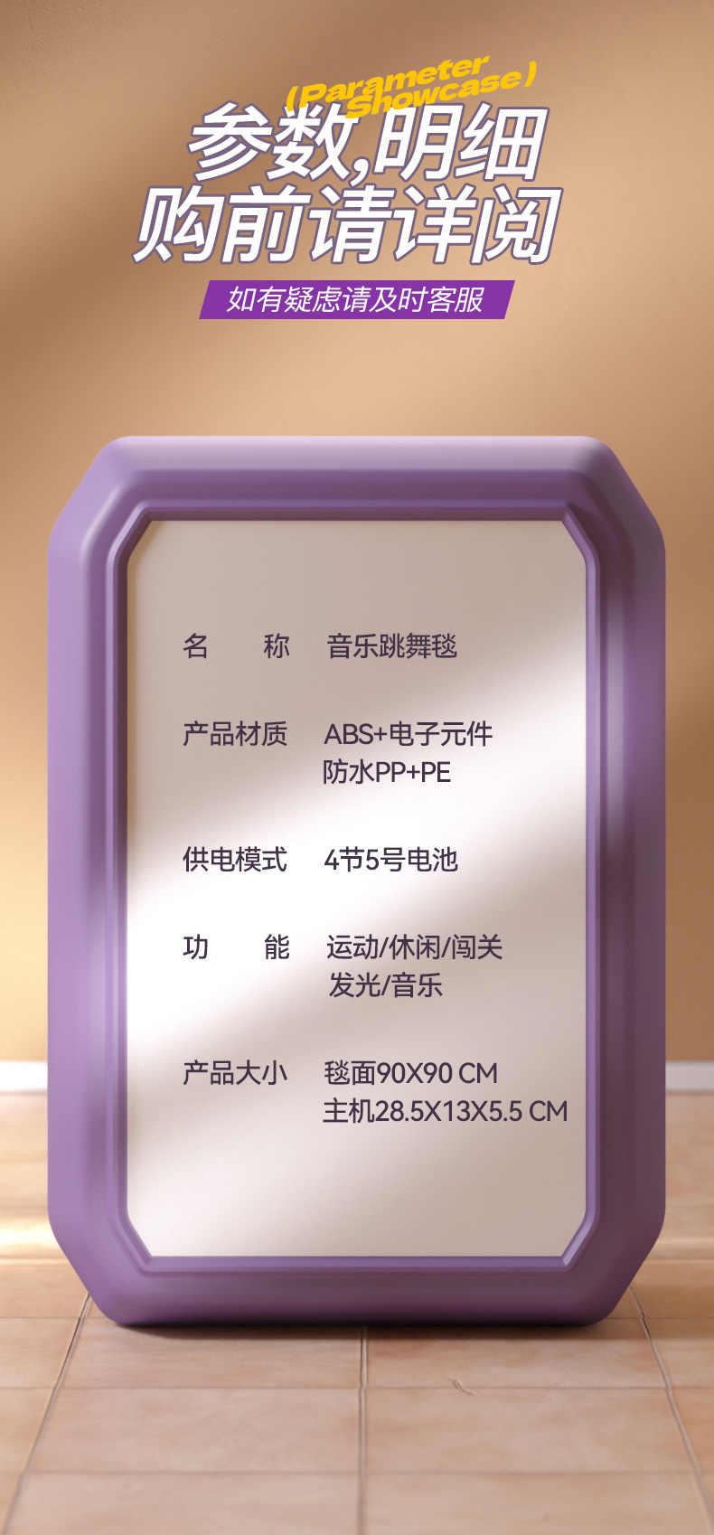 颜色 单灯款-音乐跳舞毯【智能蓝牙】无电池版,单灯款-音乐跳舞毯【智能蓝牙】电池版,单灯款-音乐跳舞毯【智能蓝牙】充电版,双灯款-音乐跳舞毯【智能蓝牙/炫彩灯光引导】彩盒版,双灯款-音乐跳舞毯【智能蓝牙/炫彩灯光引导】电池彩盒版,双灯款-音乐跳舞毯【智能蓝牙/炫彩灯光引导】锂电彩盒版