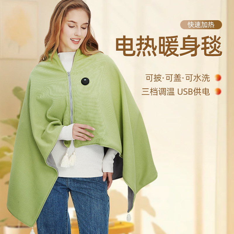跨境爆款可水洗USB发热披肩电热毯斗篷暖身盖毯披肩保暖毛毯批发