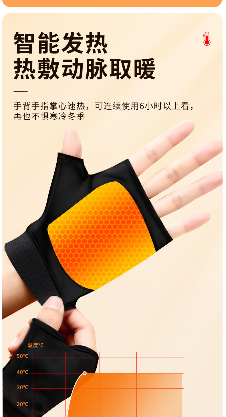 代发新款智能充电加热手套冬季暖手神器户外电动车骑行发热手套