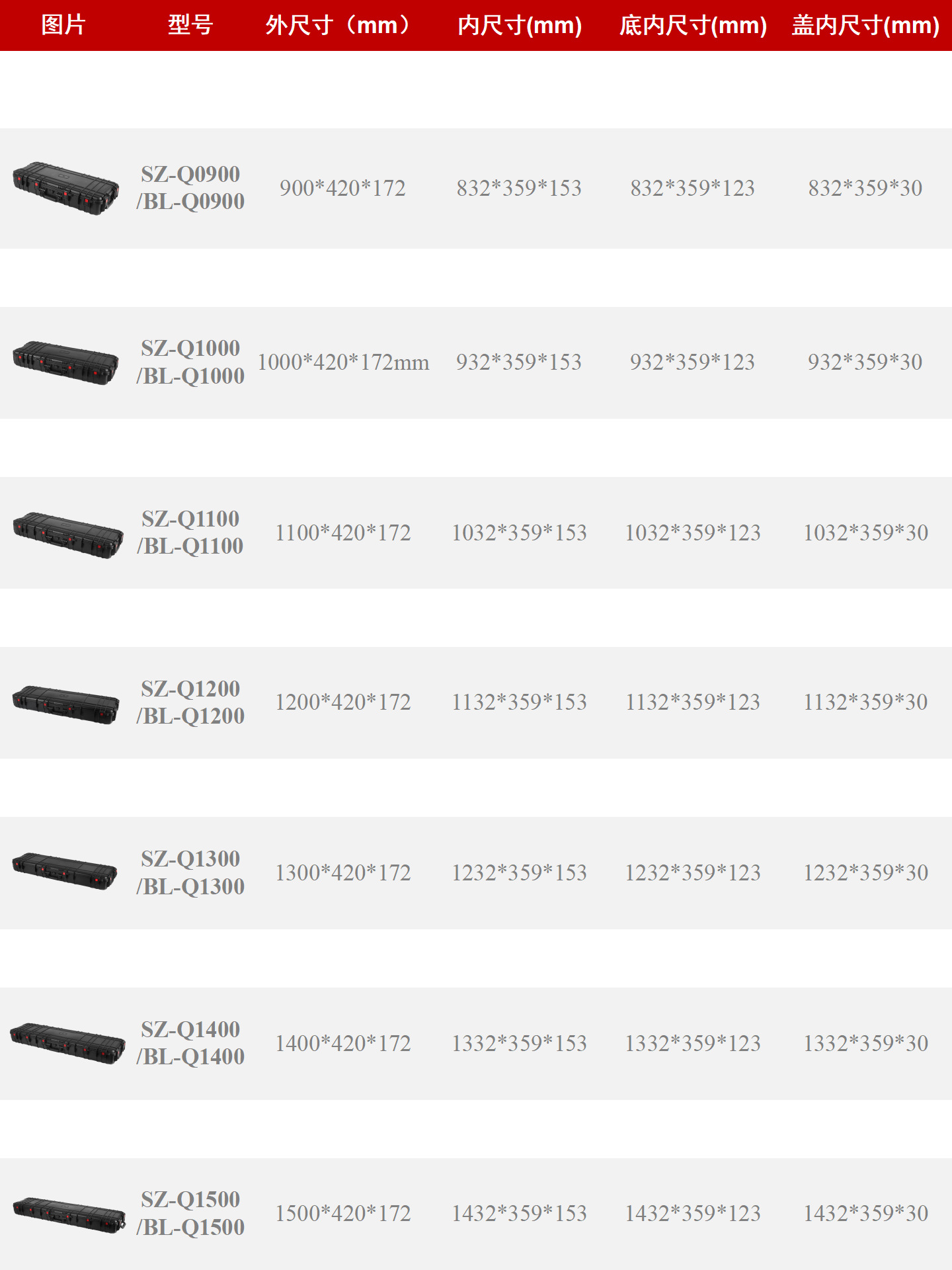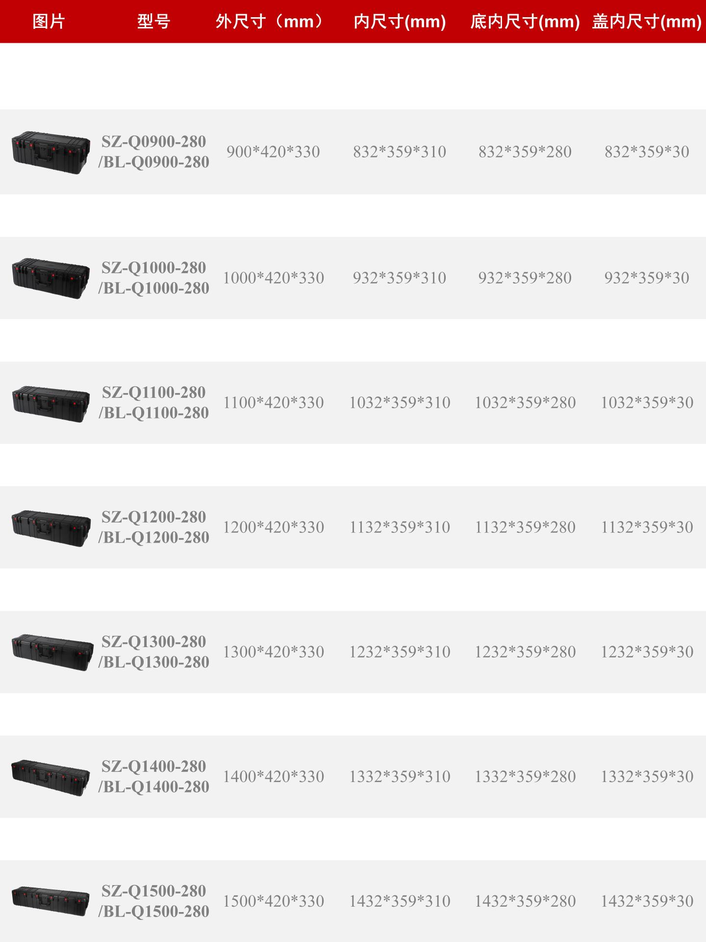 型号 DZ-1(280*248*123mm)工程塑料,DZ-2(323*275*137mm)工程塑料,DZ-3(340*280*224mm)工程塑料
