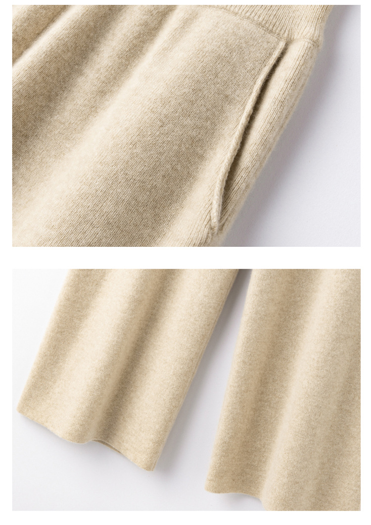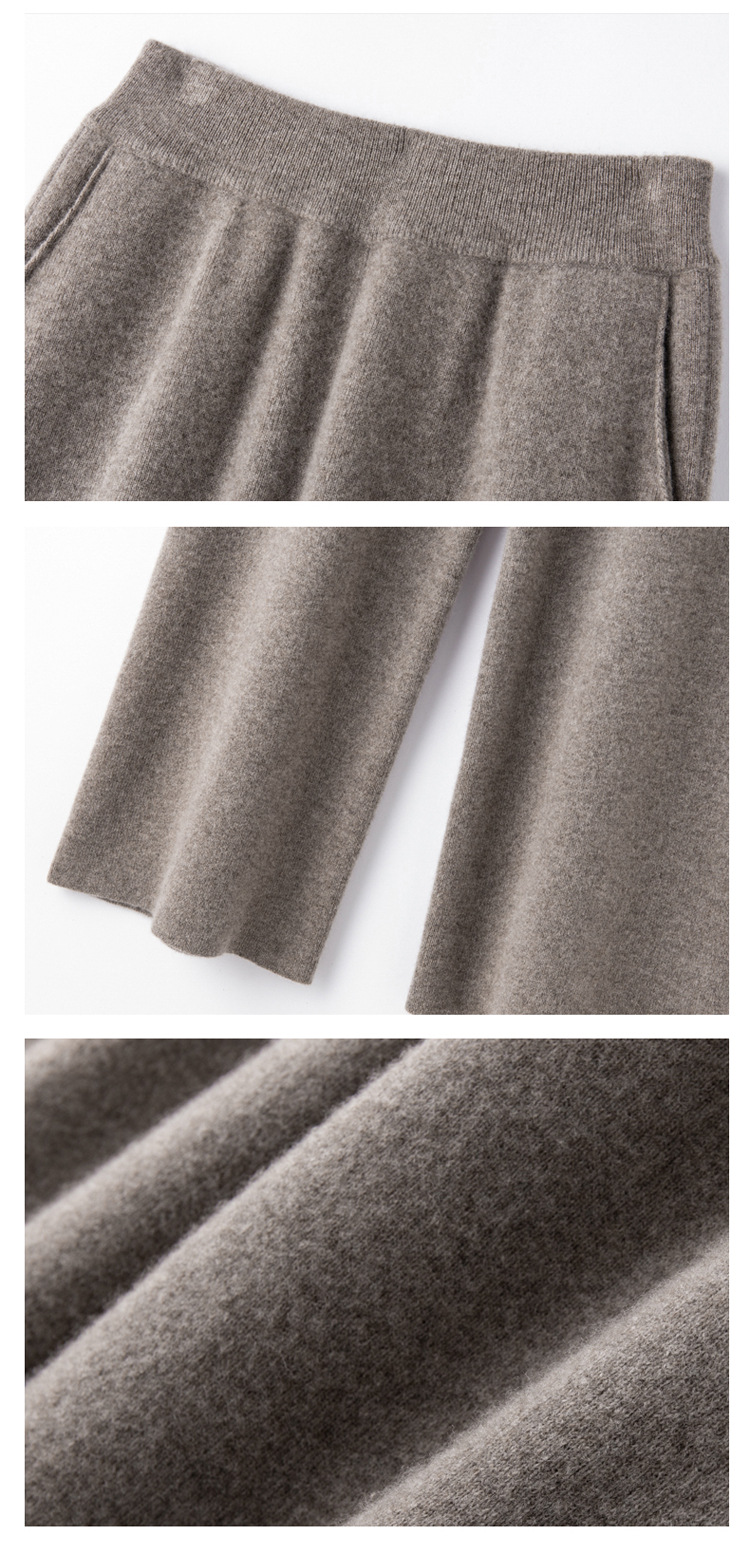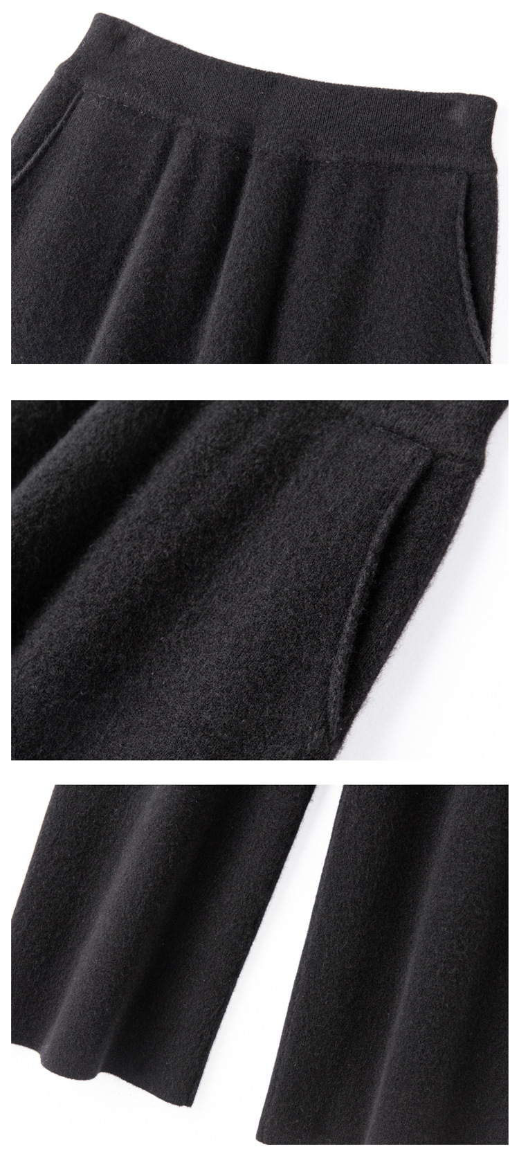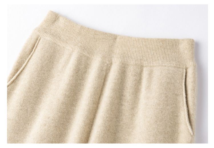 四平加厚纯羊毛裤女侧兜松紧腰居家晨练休闲外穿针织羊毛铅笔毛裤