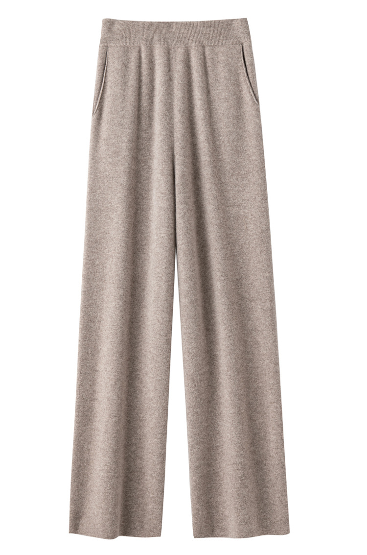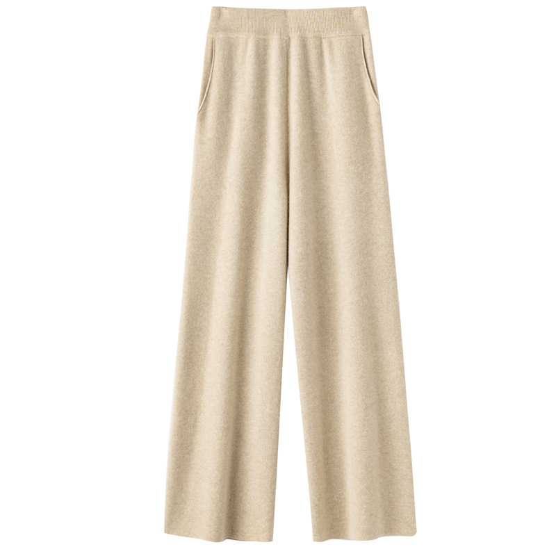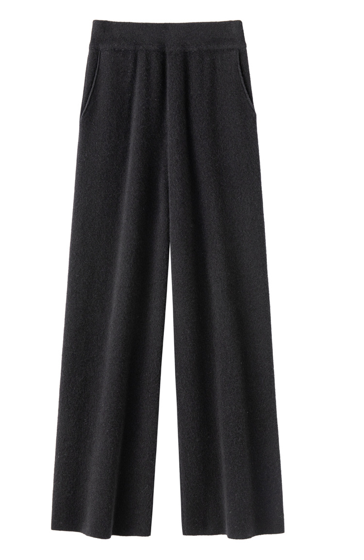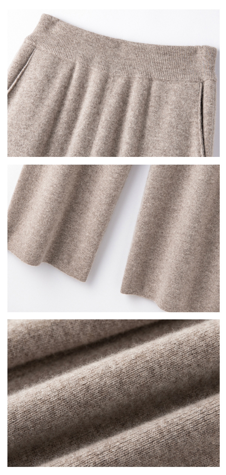 四平加厚纯羊毛裤女侧兜松紧腰居家晨练休闲外穿针织羊毛铅笔毛裤