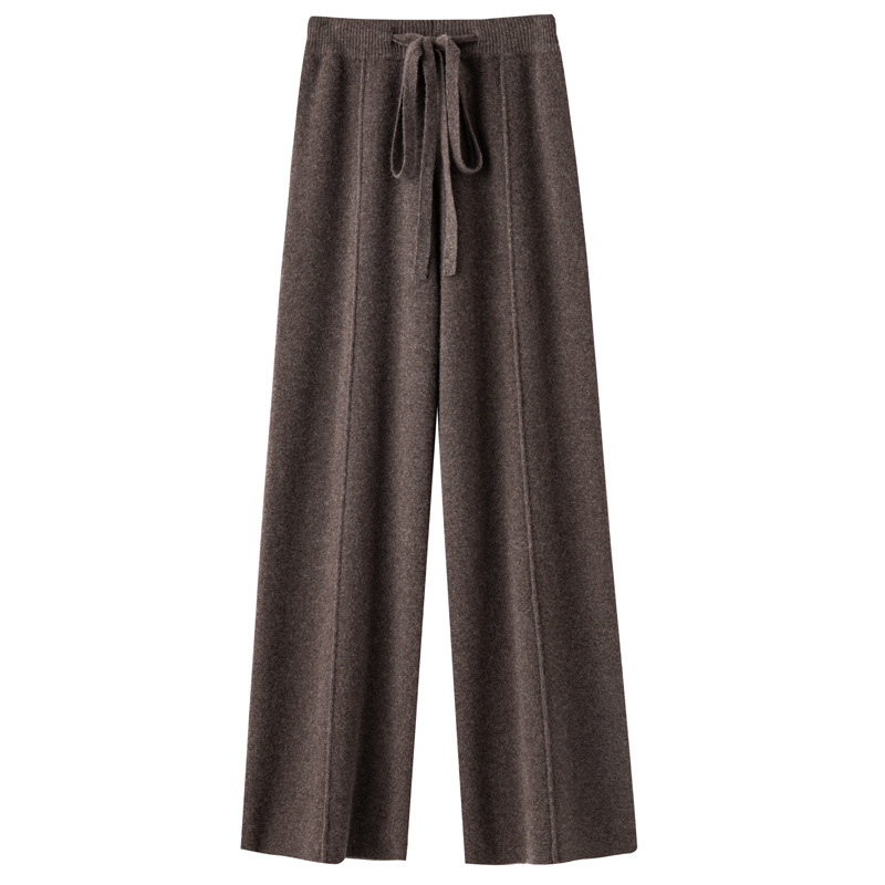 100% ウールのズボンの女性はニットの中縫い目を着ています。