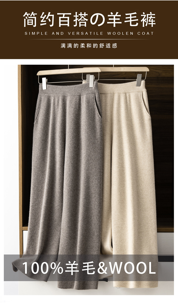 25秋冬羊毛裤针织阔腿裤女垂坠感直筒高腰休闲拖地裤羊毛针织裤子
