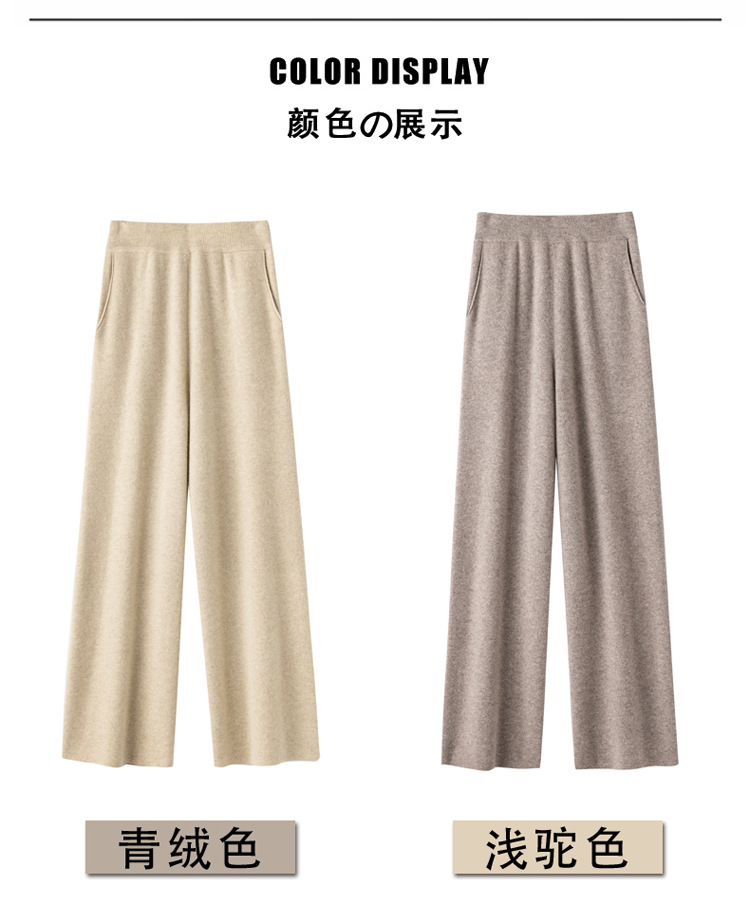 新しいニットの女性のズボンの高腰の弾力性の垂れ下がっている感じの百合の保温のズボンの小さい背は地のズボンの広い足のズボンのストレートなズボンの冬を引きずっています。