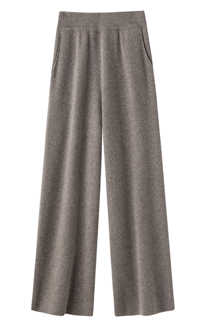 IlessisWANウールが高くて、腰が高くて、ニットのワイドパンツの女性の長ズボンが長くなります。