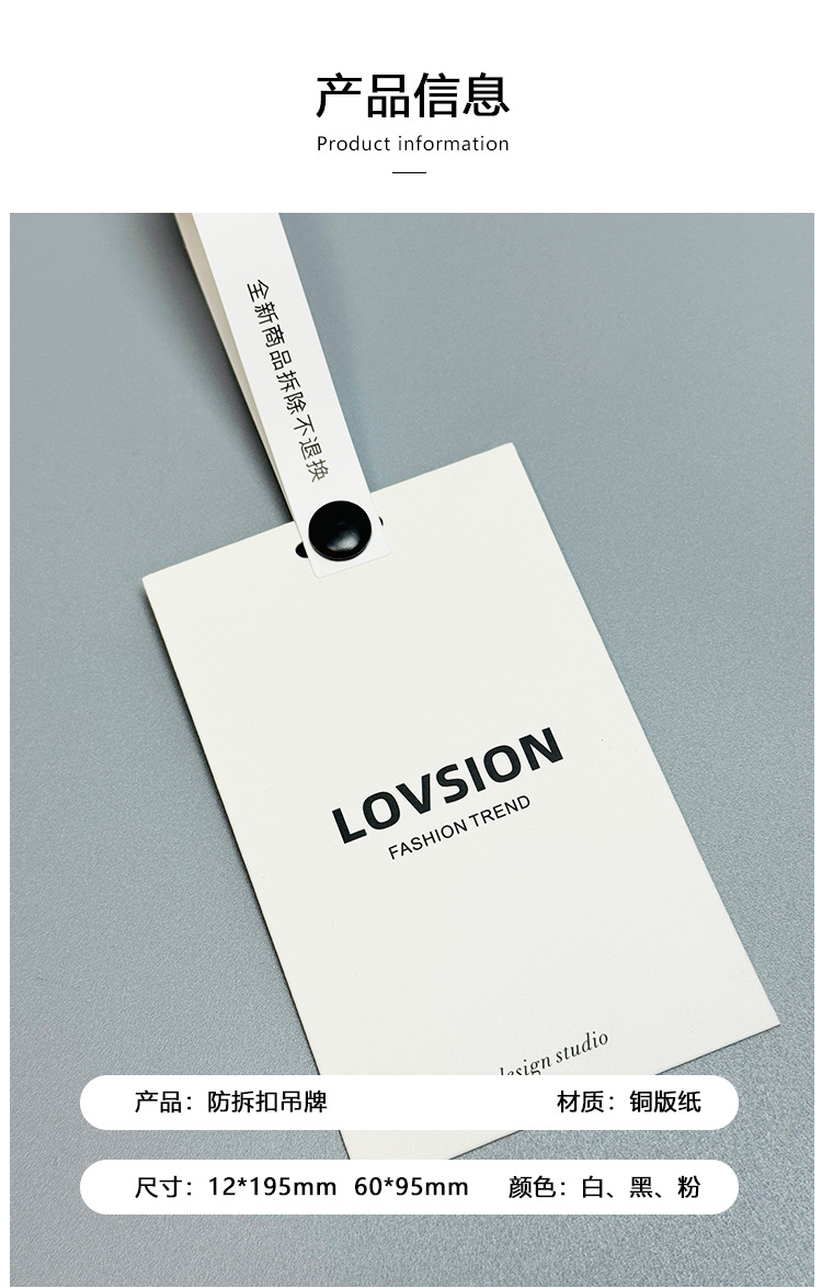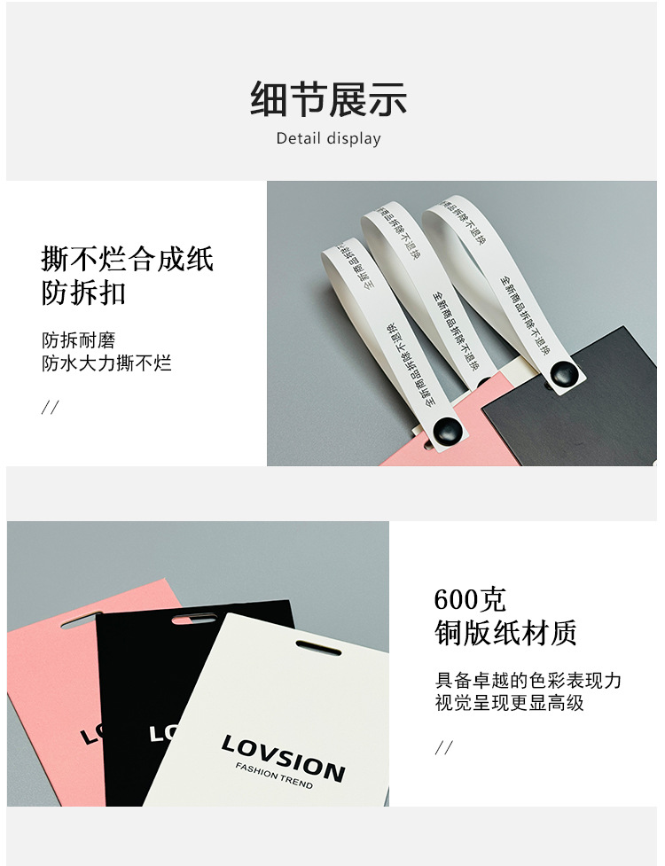 防拆扣吊牌定制加厚铜板纸吊牌订制防水撕不烂合成纸防拆吊牌定制