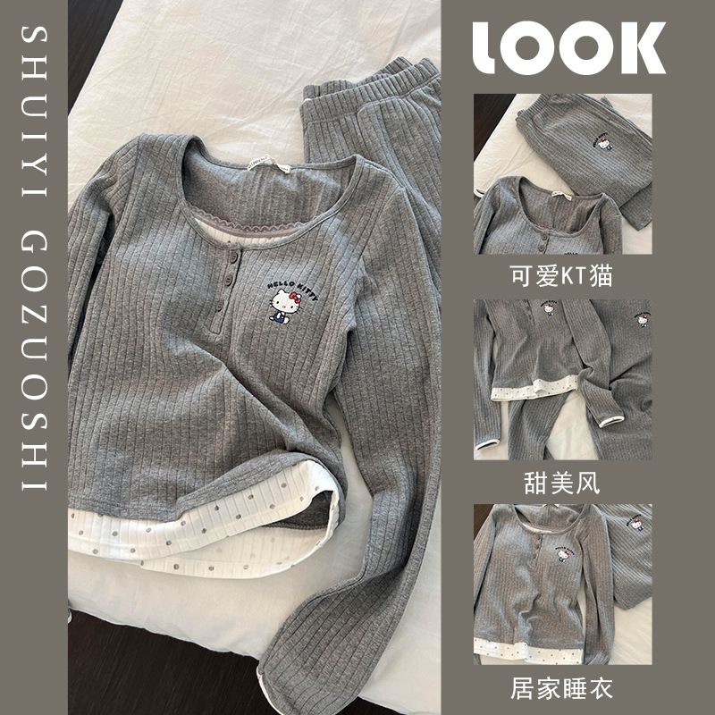 helloKitty睡衣女款秋冬季2025新款珊瑚绒磨毛德绒加绒加厚家居服