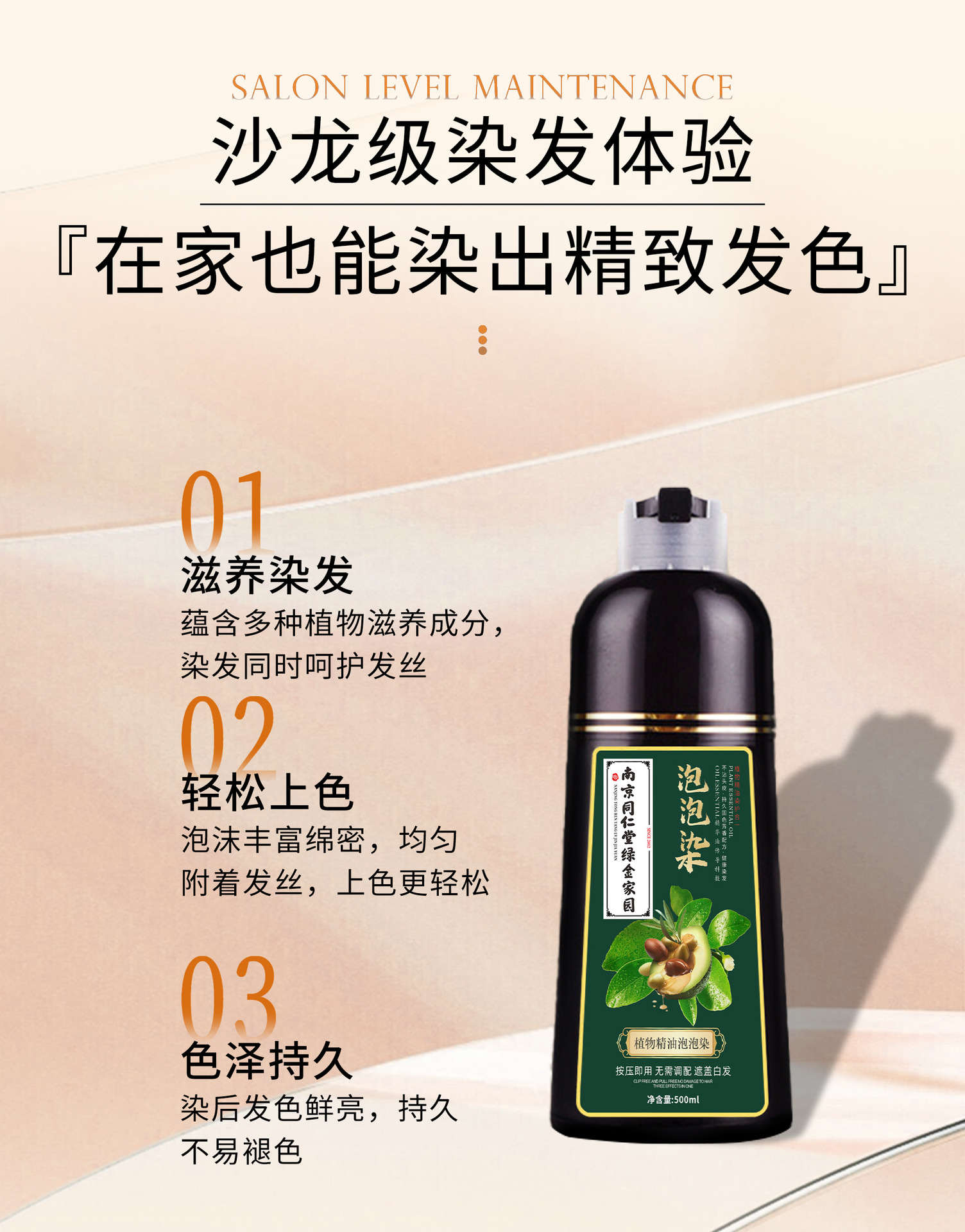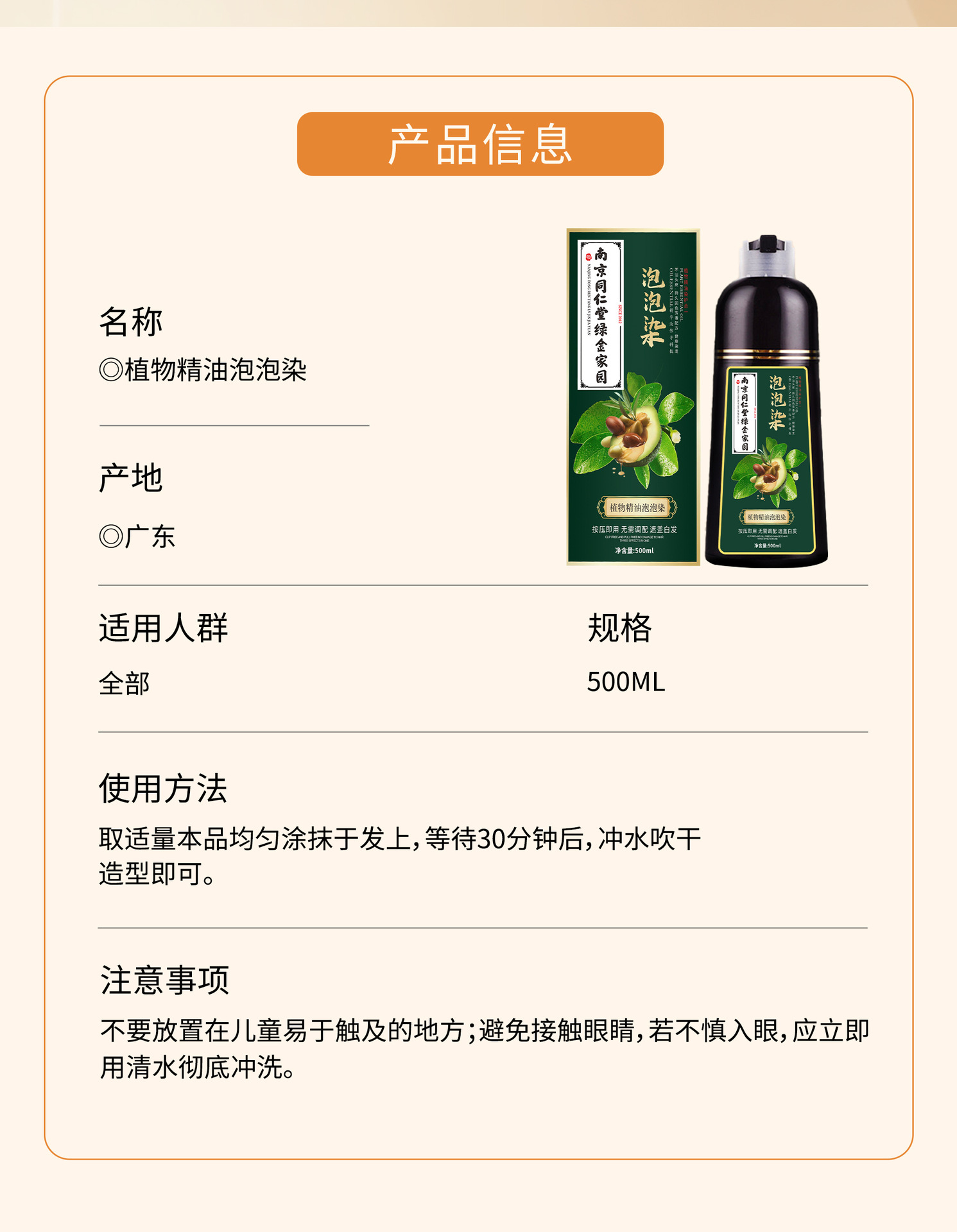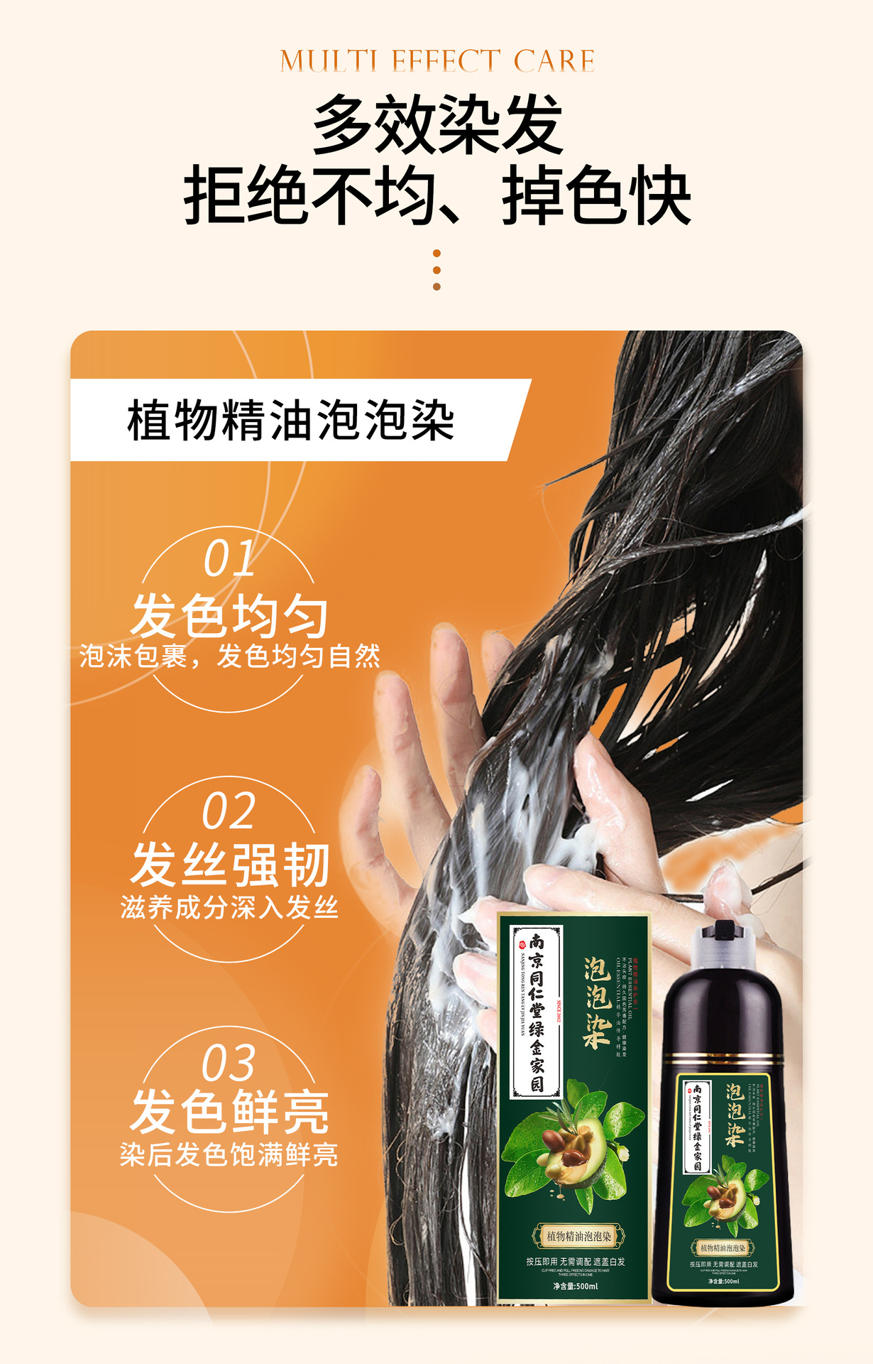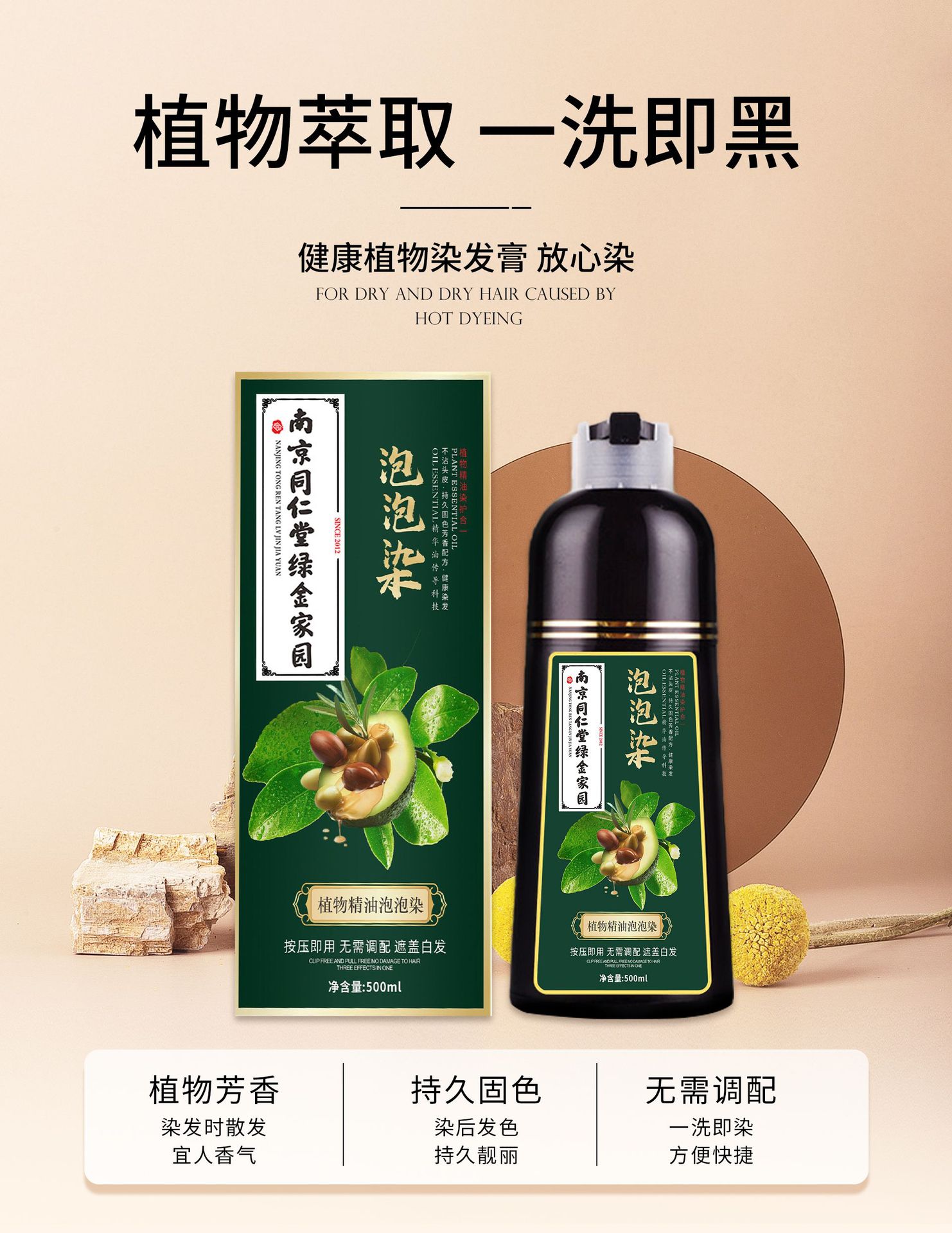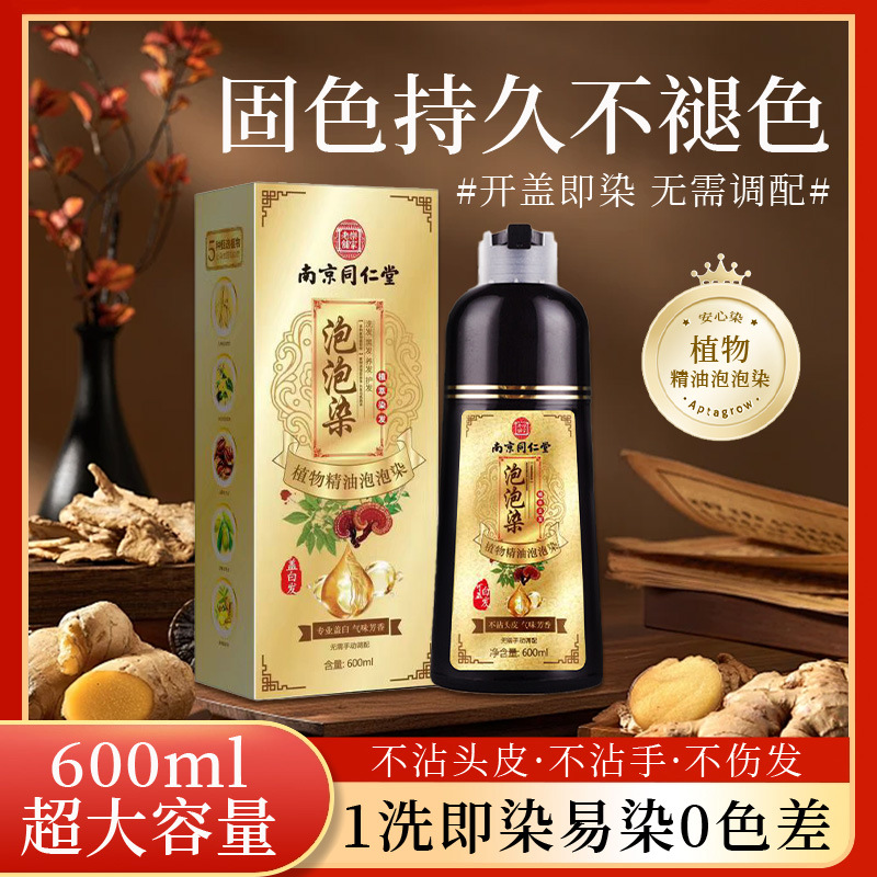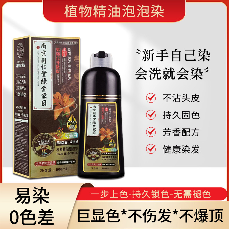 南京同仁堂染发膏植物精油泡泡染不沾头皮不伤发一支黑染发剂批发