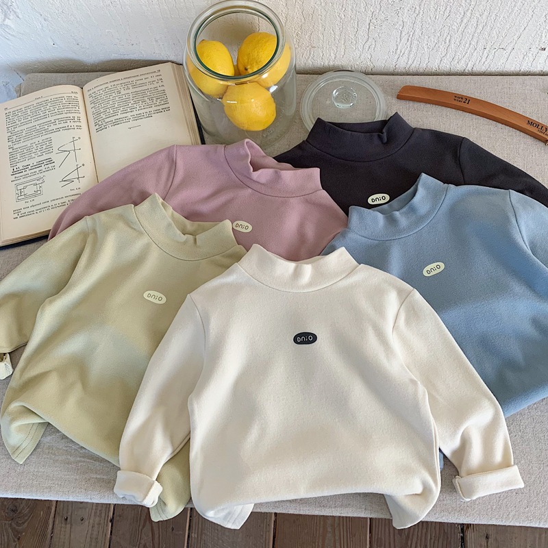 儿童棉磨毛中领打底衫男女童春秋打底套头半高领百搭纯色长袖T恤