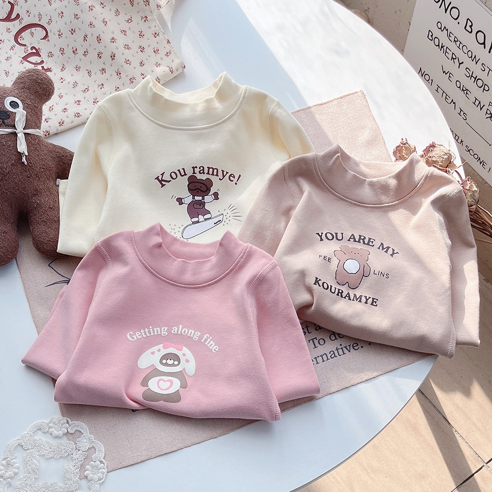 基础BI备韩版儿童亲肤德绒半高领打底衫男女宝宝高弹加厚内搭T恤