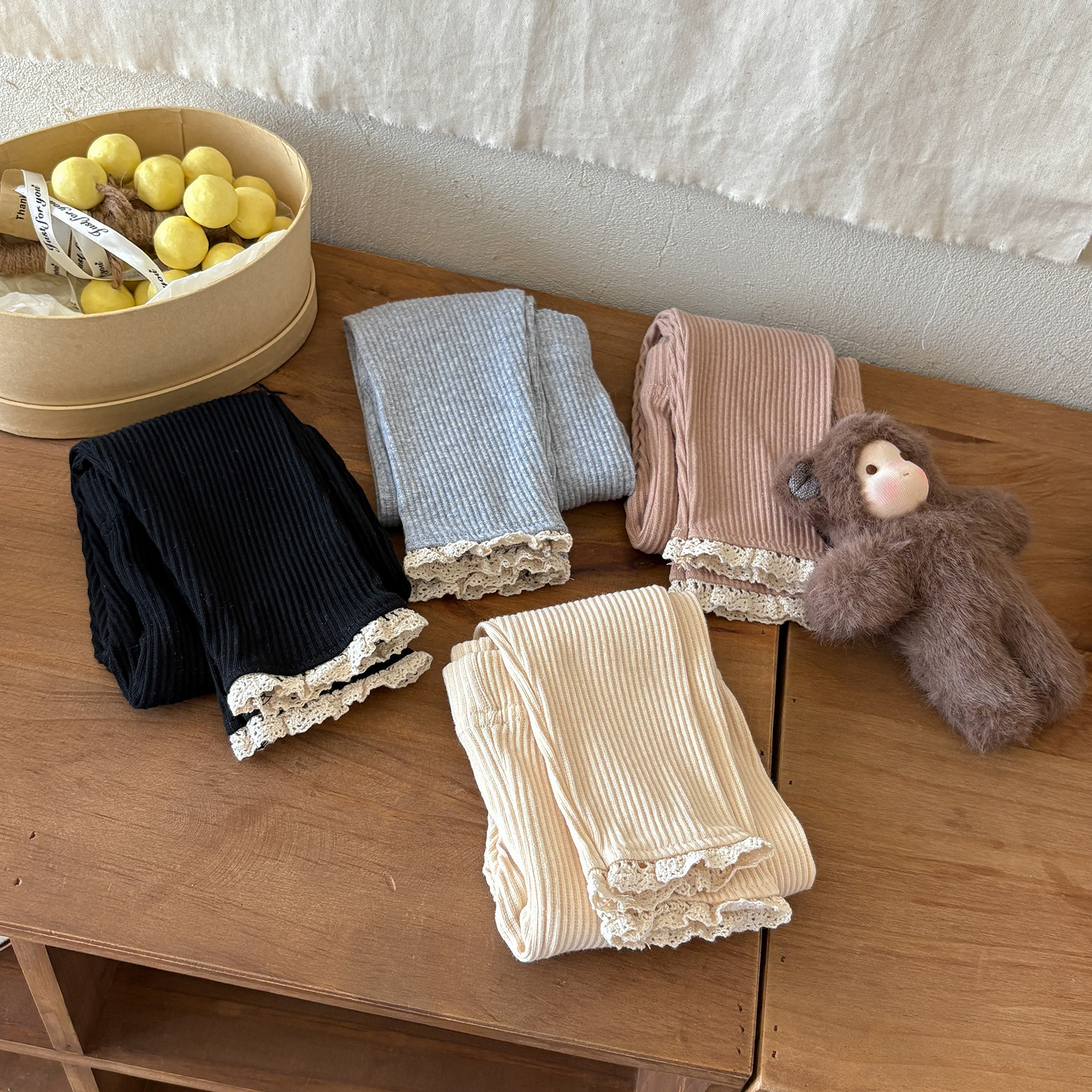 2025韩版女童打底裤外穿春秋季童装洋气坑条修身裤子宝宝蕾丝长裤