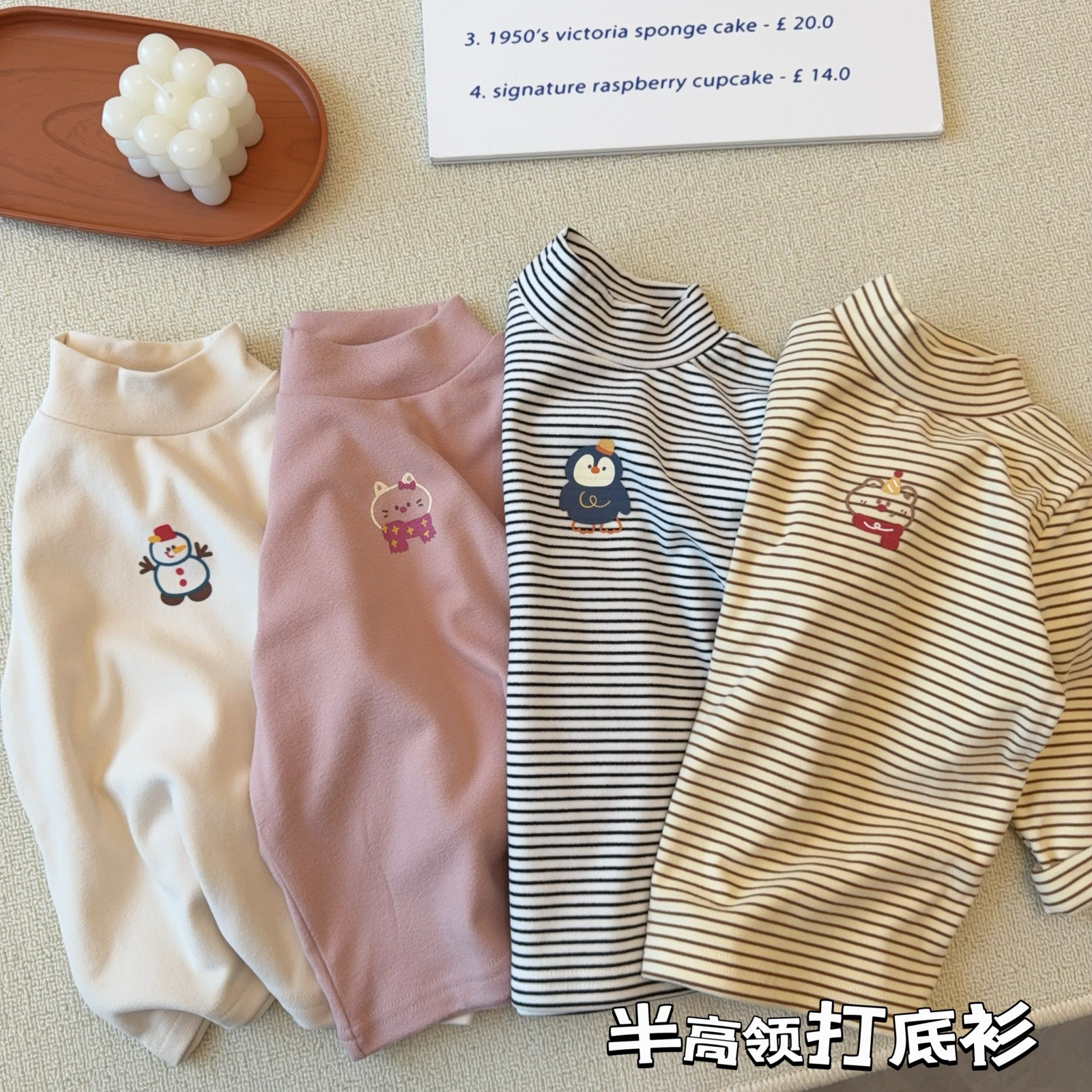 秋冬新款儿童条纹打底衫半高领德绒童装长袖T恤内搭女童保暖上衣