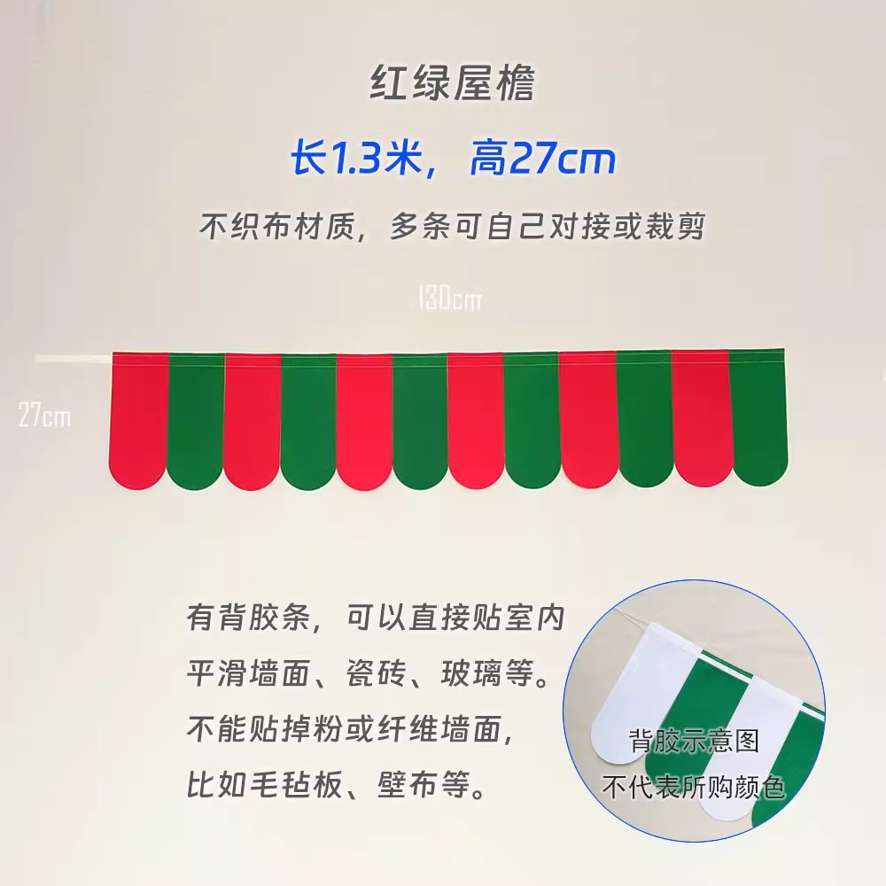 クリスマスの赤緑の色とりどりの旗の店舗の装飾は子供の部屋を配置して撮影の道具の三角旗の祝日の雰囲気感を飾ります。
