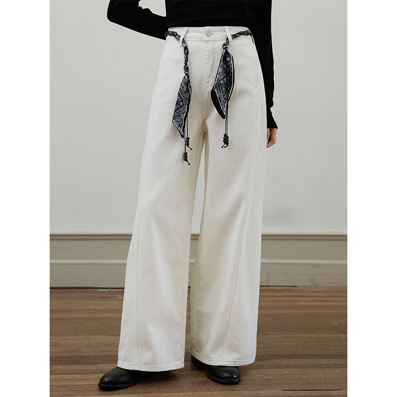 【长腿公式 腰果花丝巾腰带】歌铭秋季新款阔腿直筒牛仔裤女N591C