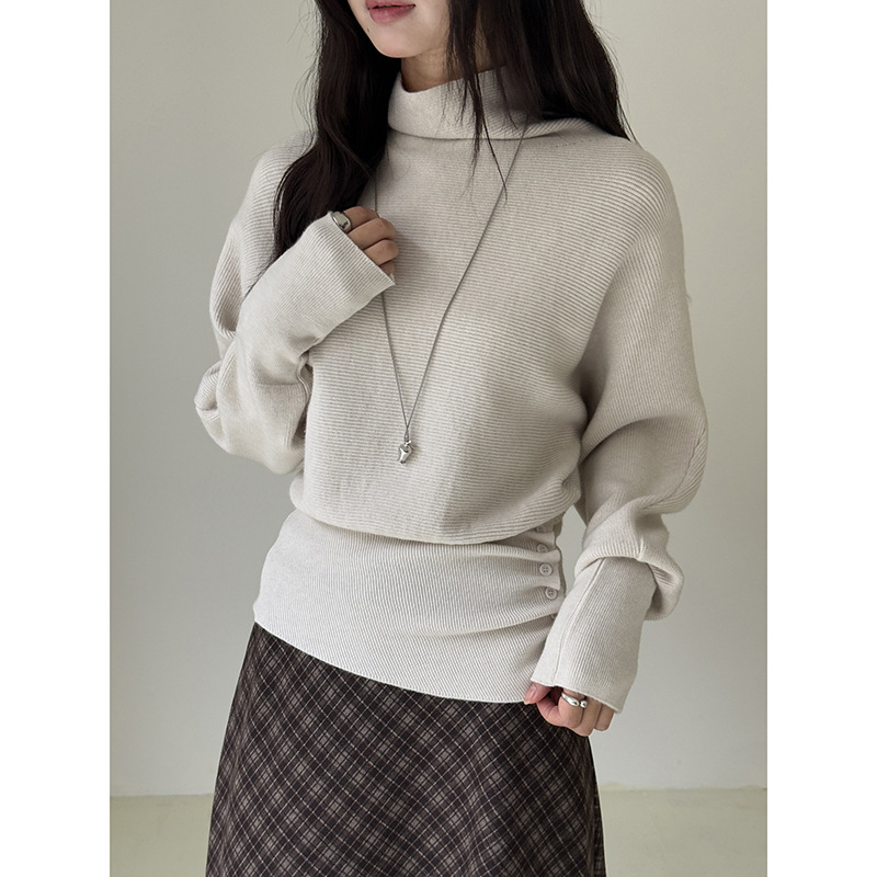 【简爱乐章】歌铭不规则纽扣收腰半高领针织衫冬季套头毛衣J821C