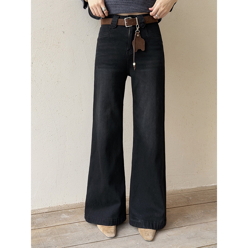 【歌铭】复古做旧加绒加厚高腰微喇牛仔裤女冬季新款直筒裤N954C