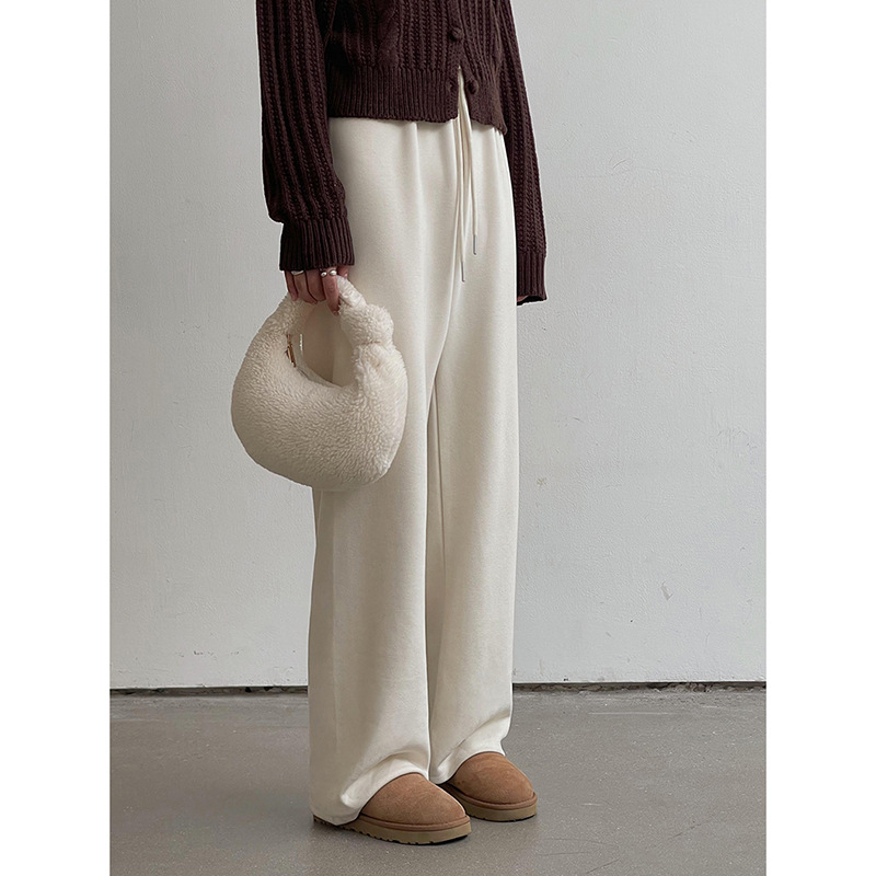【ノーメイクでもOKの犬散歩用パンツ 4色】歌明 韓国風通勤ストレート裏起毛カジュアルパンツ 冬用ワイドパンツ N292B
