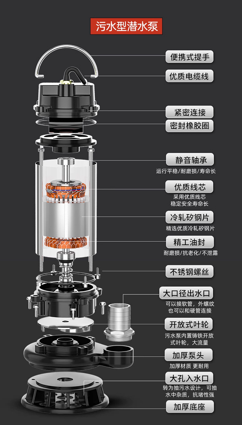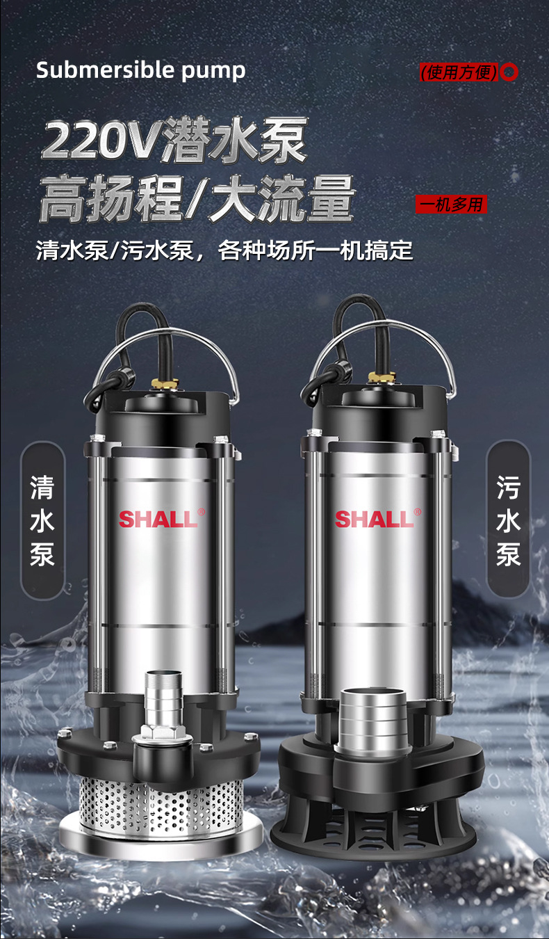 工厂交流潜水泵220v大功率家用专用抽水泵农用灌溉清污水泵抽水机