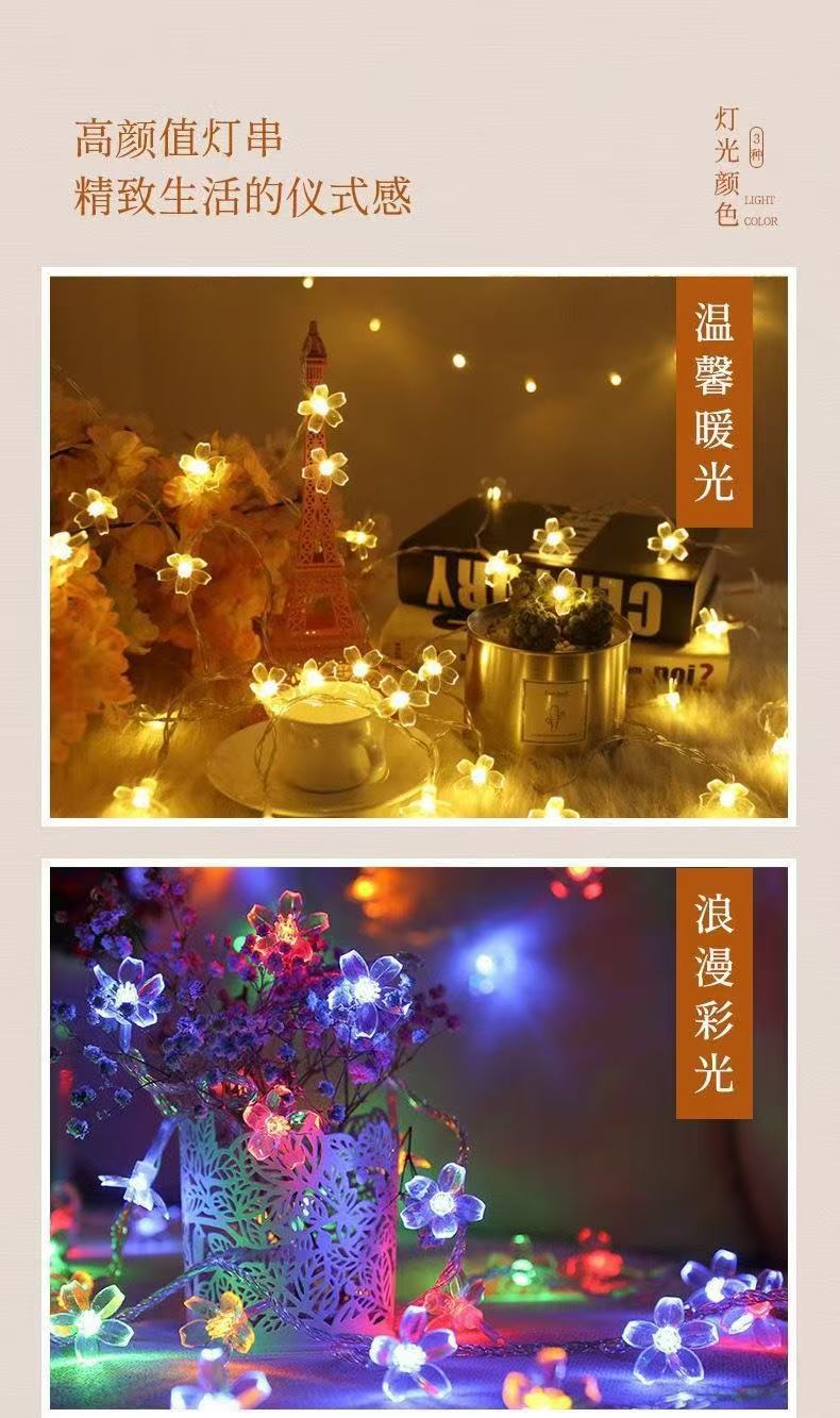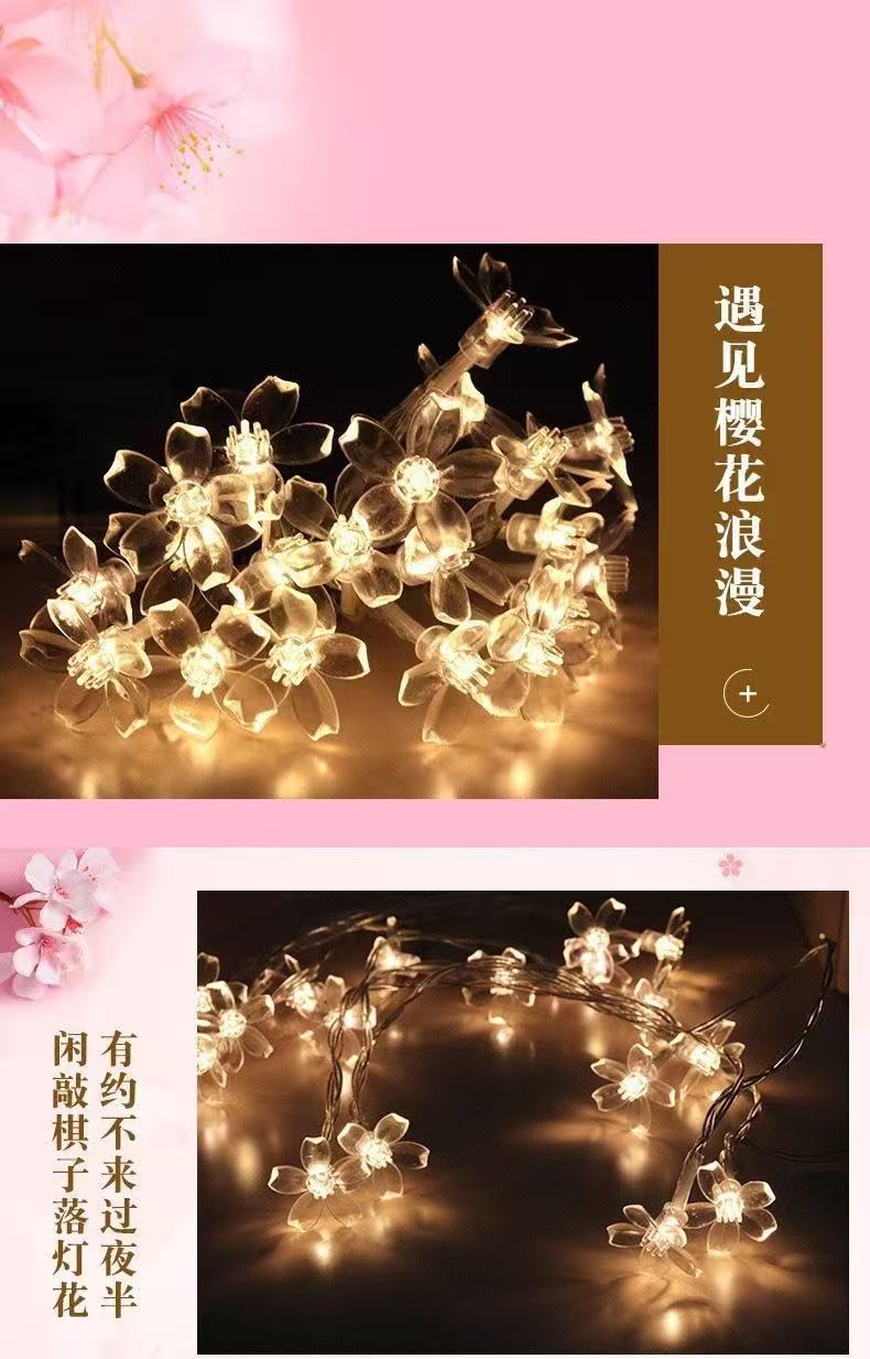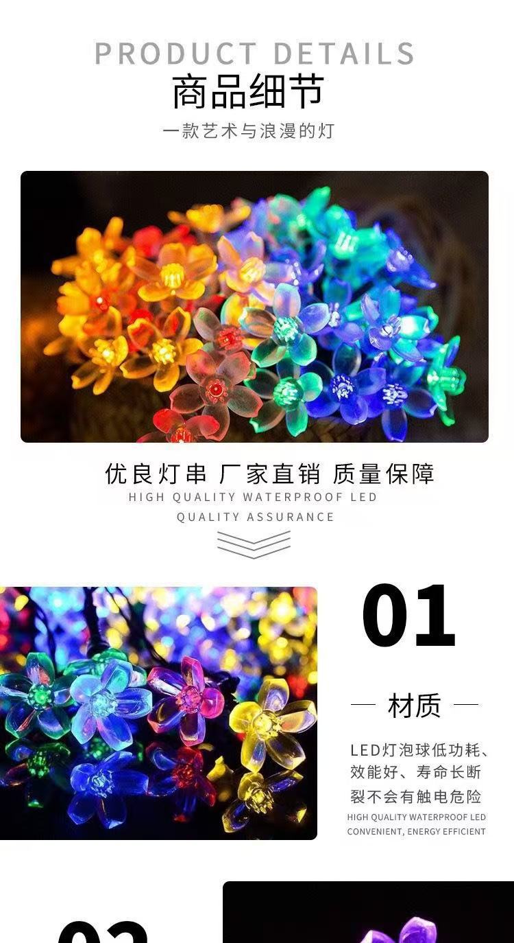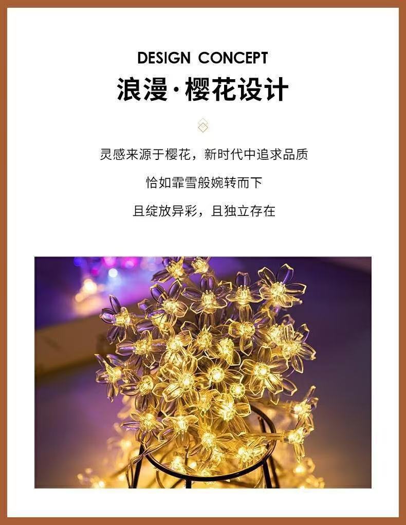跨境太阳能LED樱花灯串户外装饰灯防水庭院花园露营LED装饰灯串