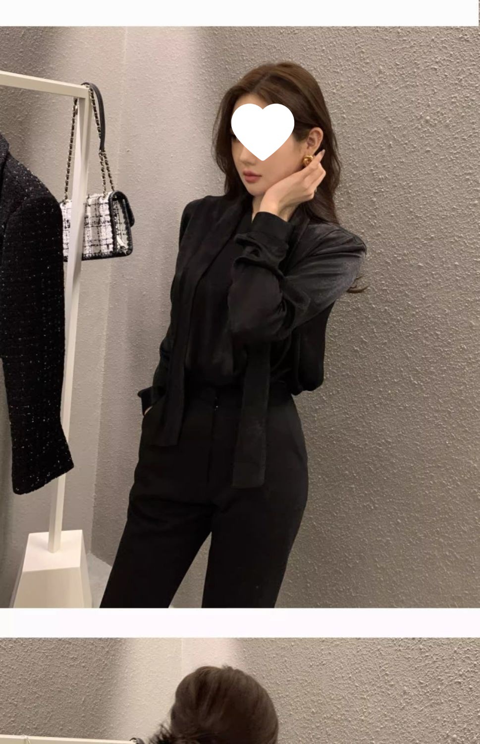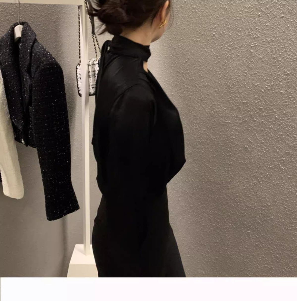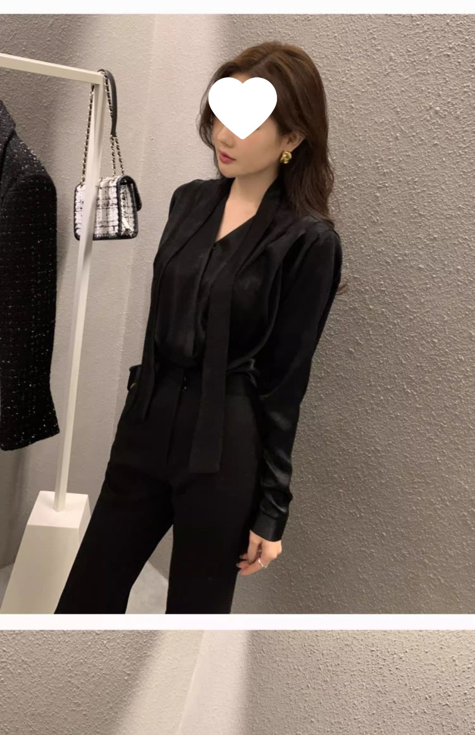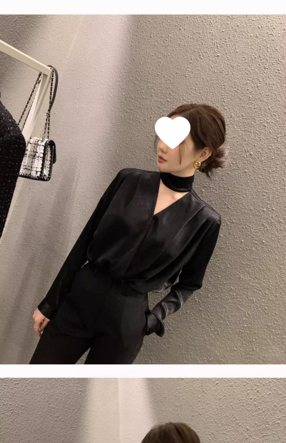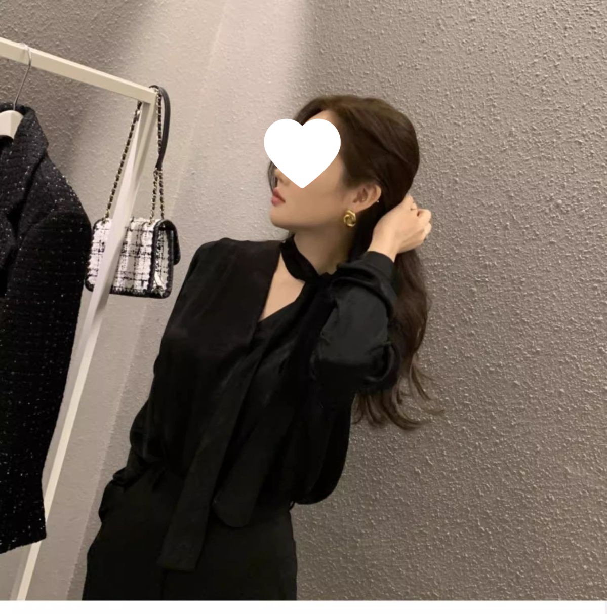 法式轻奢蝴蝶结黑色镂空缎面衬衫女设计感春秋别致喇叭袖上衣
