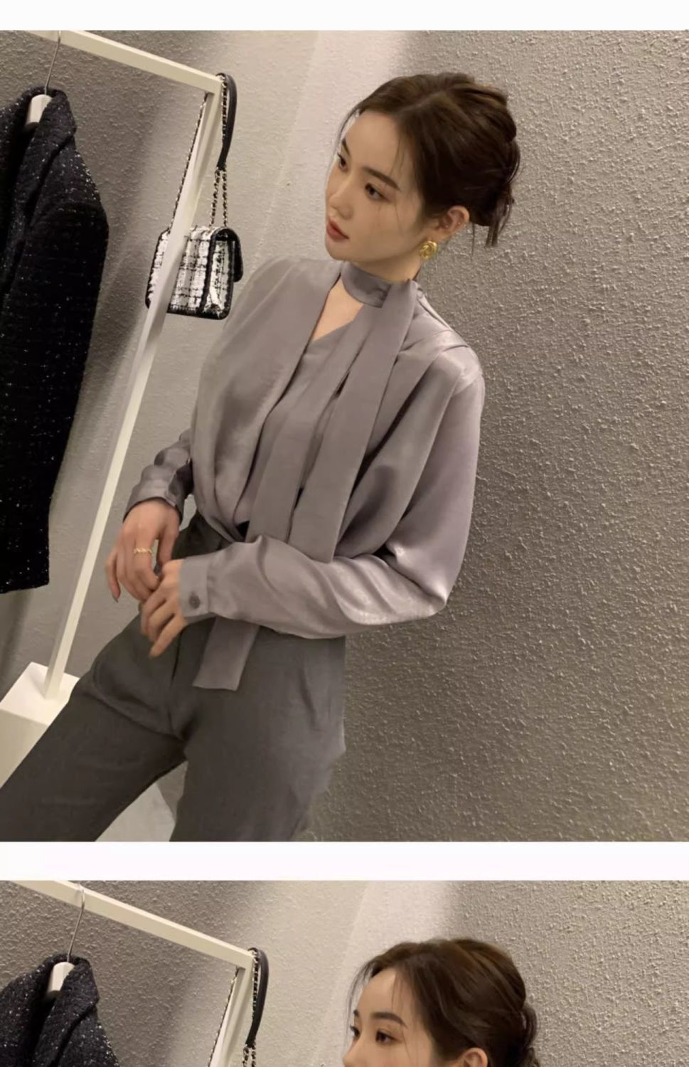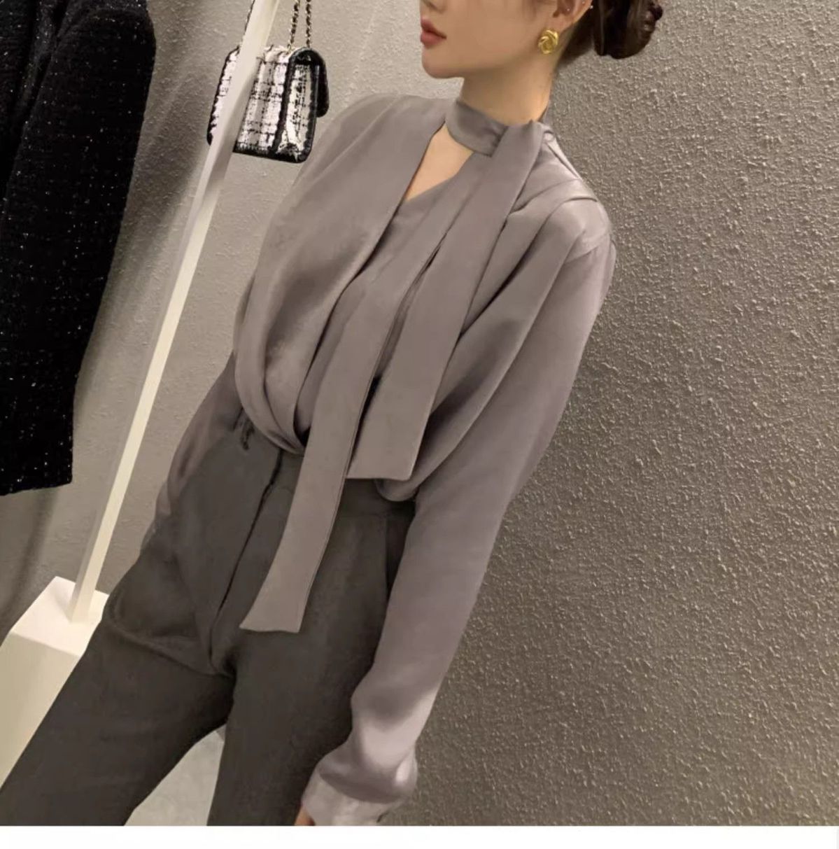 轻奢气质高级感飘带长袖衬衫上衣女2026新款直筒垂感休闲圆领百搭