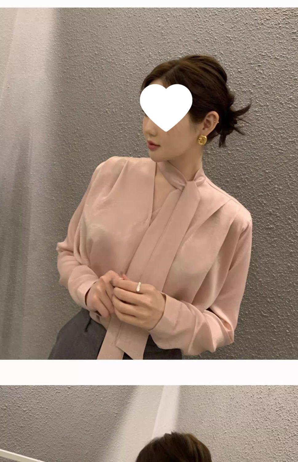 2025春秋新作高級感雰囲気リボン付きの蝶結びシャツ女性長袖職業教資は白いシャツを着ています。