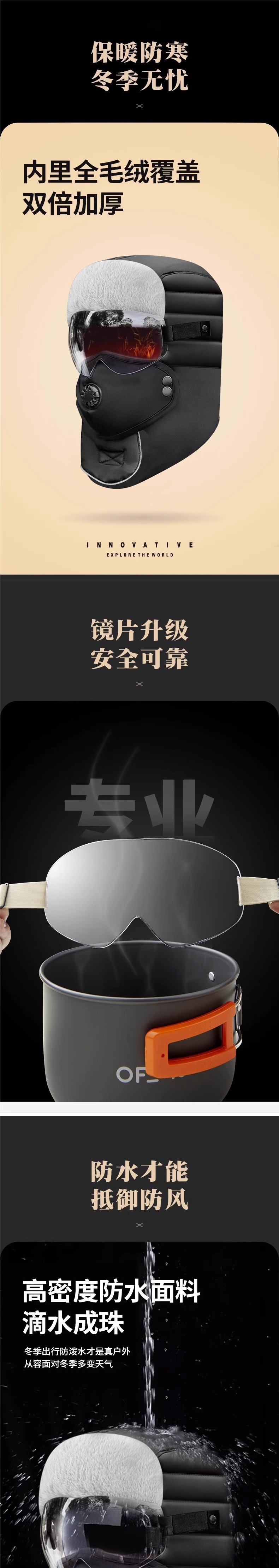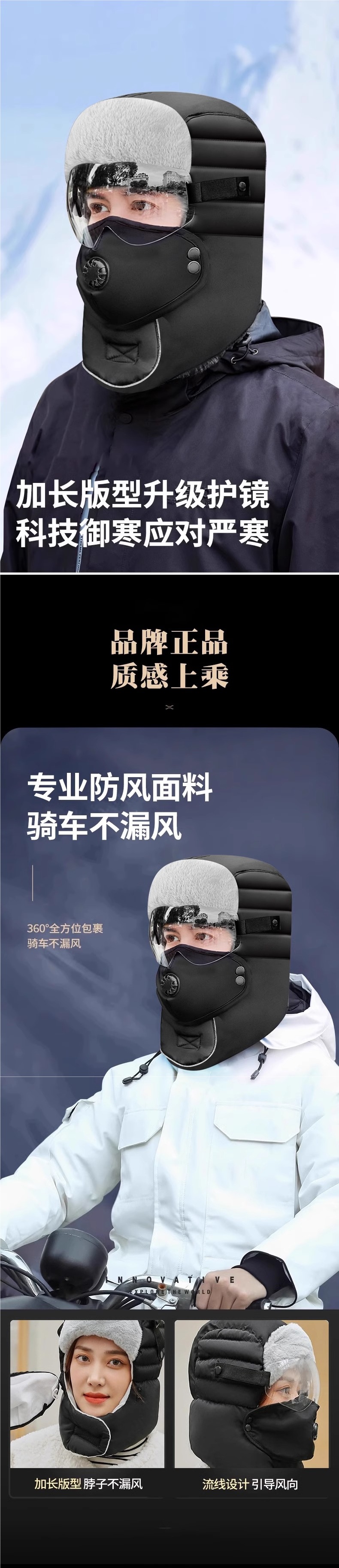 帽子男冬季骑行电动车保暖神器加厚棉帽女防风防寒面罩冬天雷锋帽