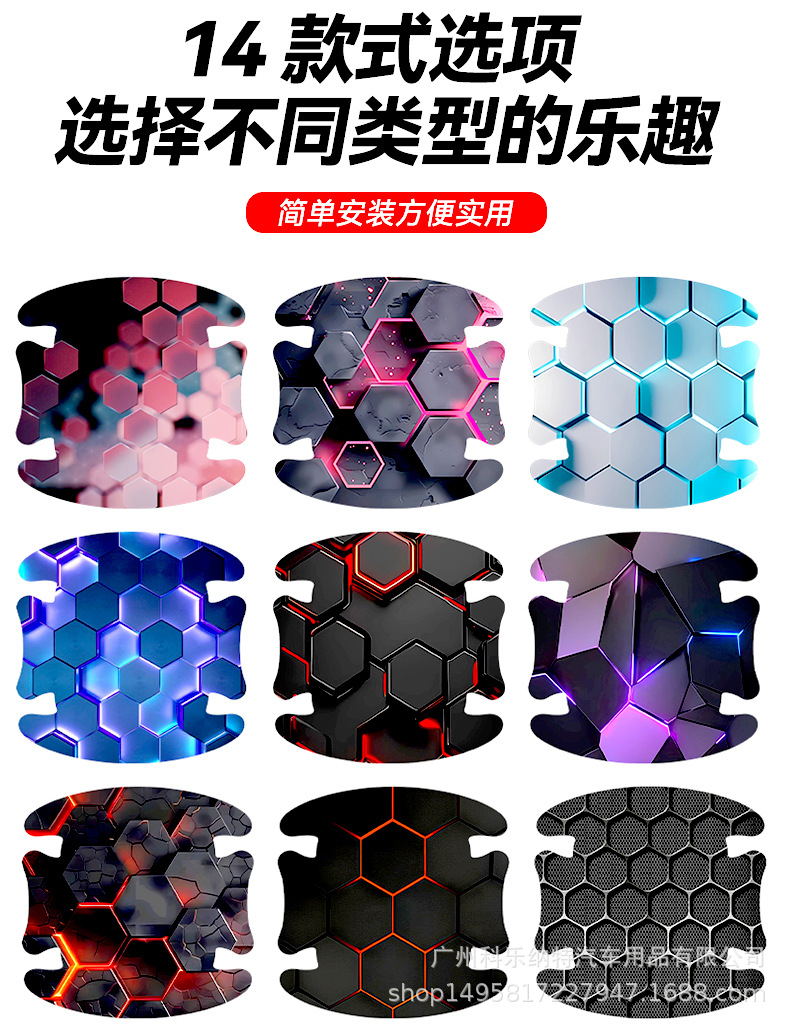 跨境新款碳纤汽车门碗防划贴个性通用车用门把手保护贴装饰车身贴
