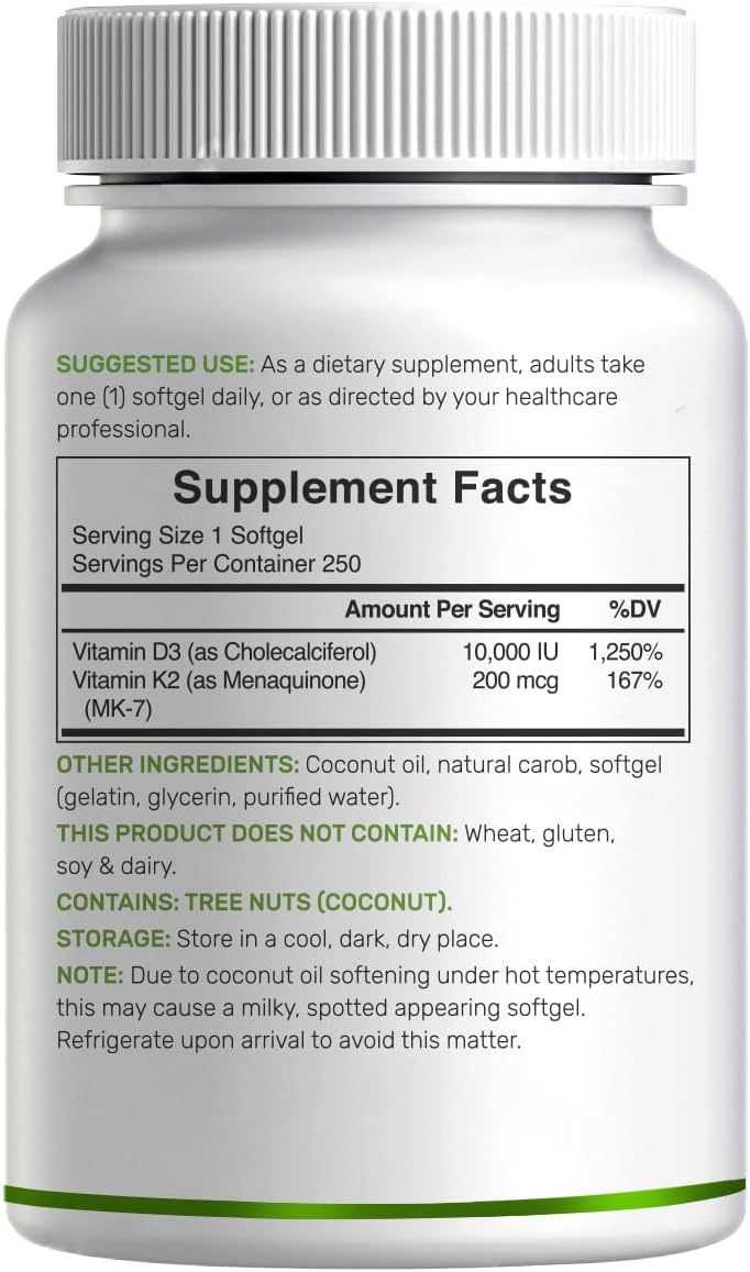 TK爆品D3+K2Vitamin二合一初榨椰子油复合物250粒补充剂软胶囊膳