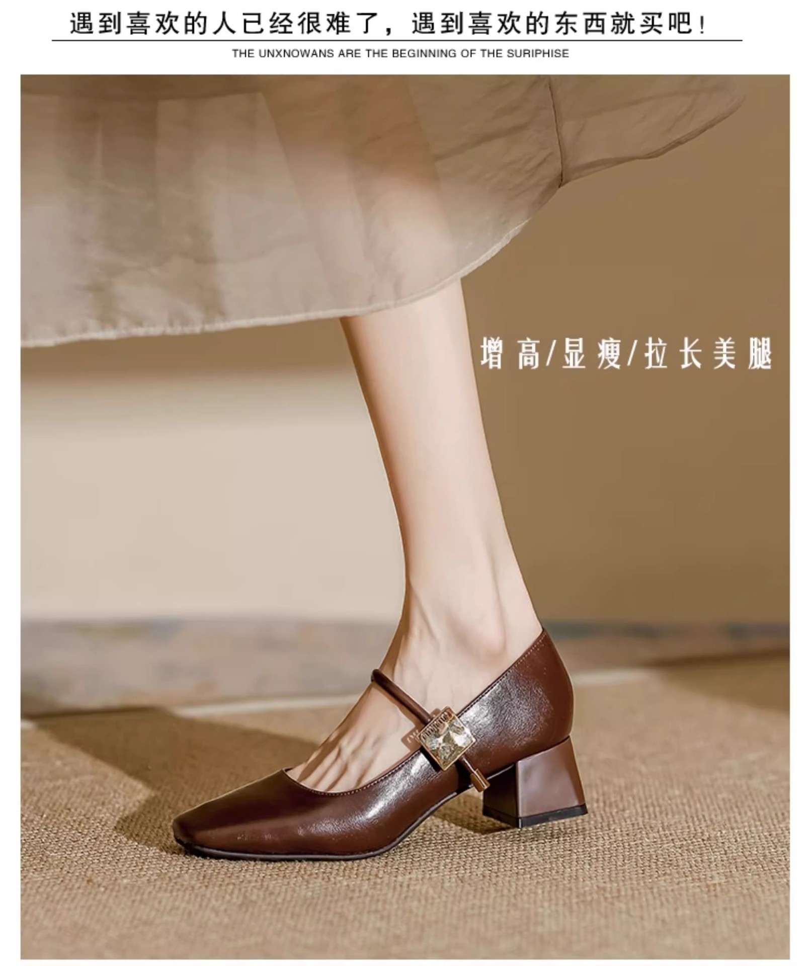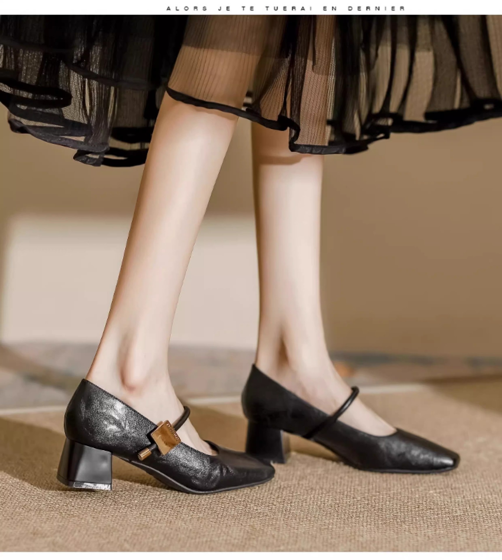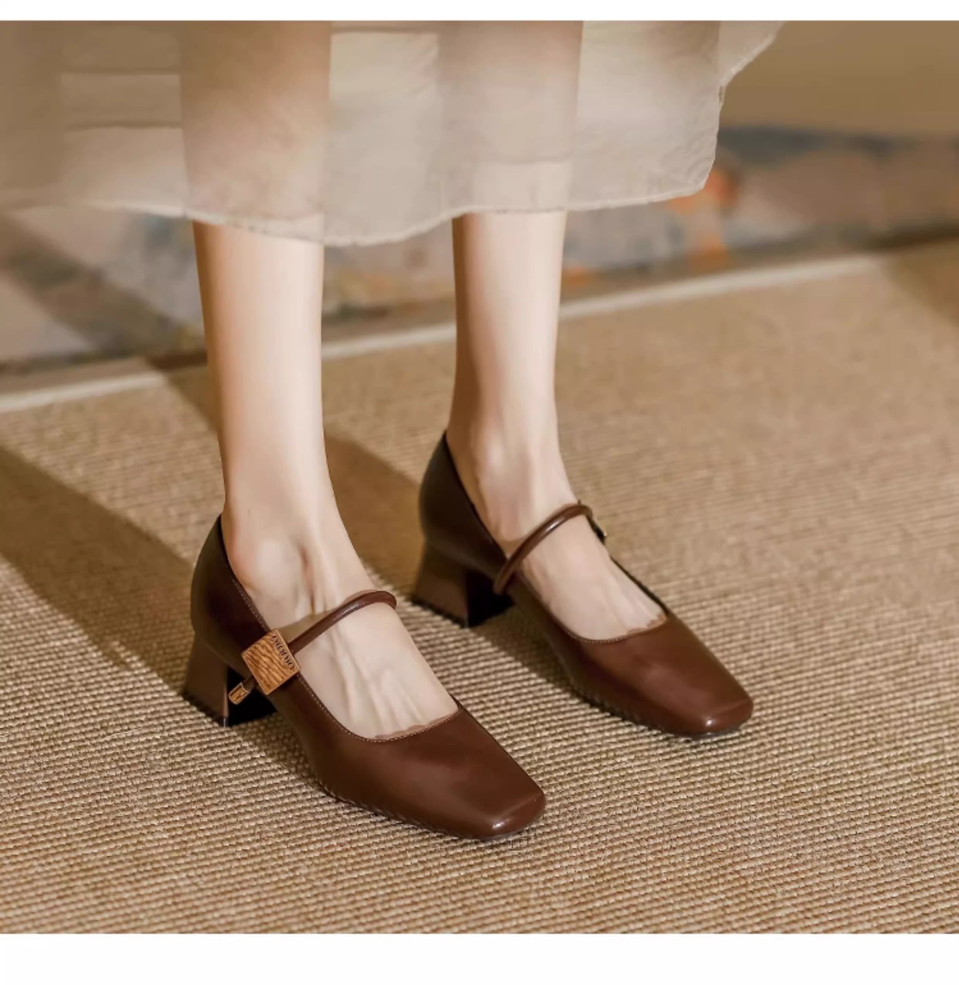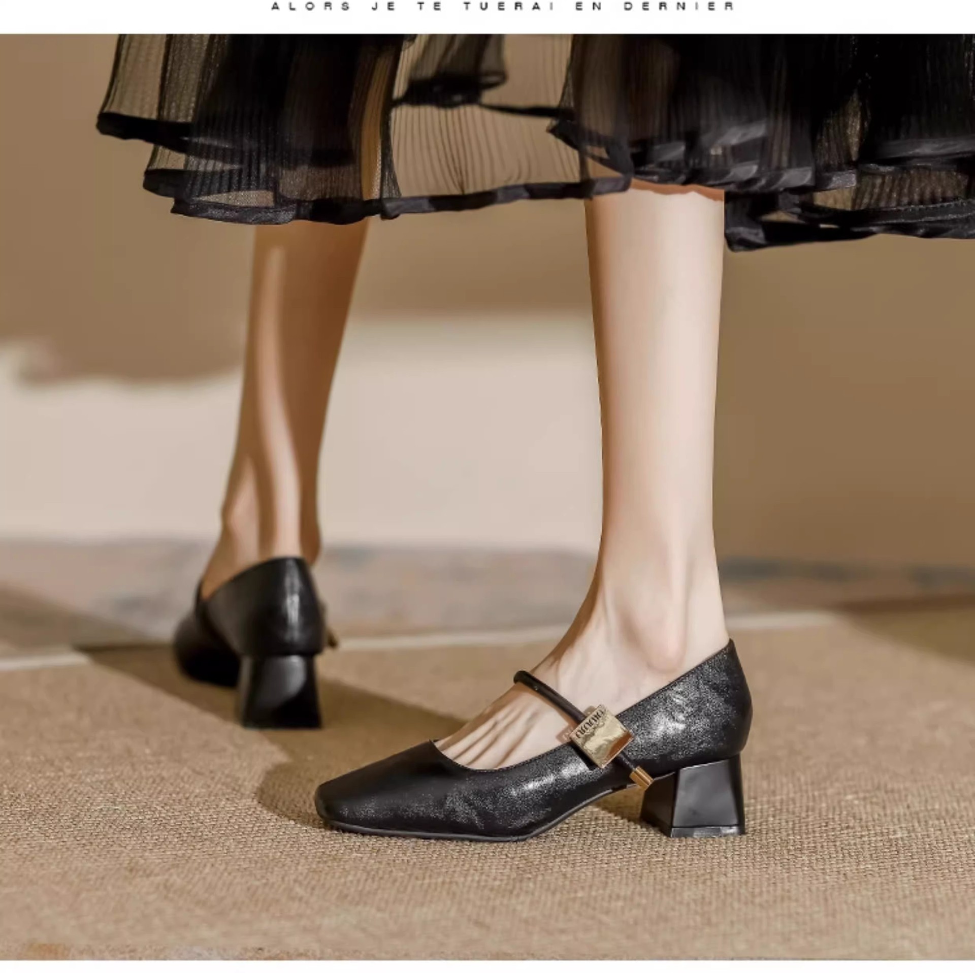 复古玛丽珍鞋女2025年新款气质方头粗跟单鞋配裙子软皮高跟鞋