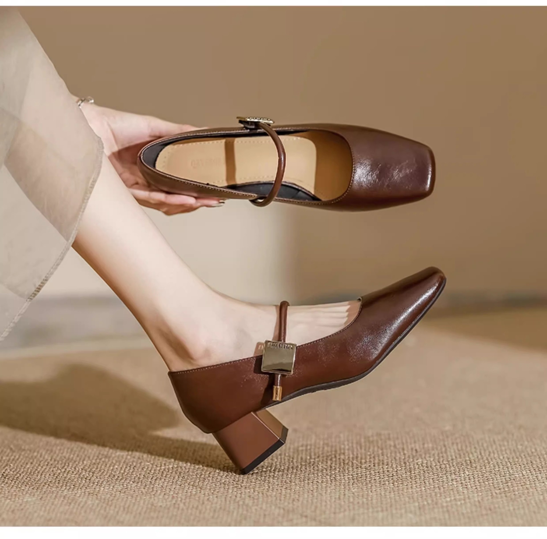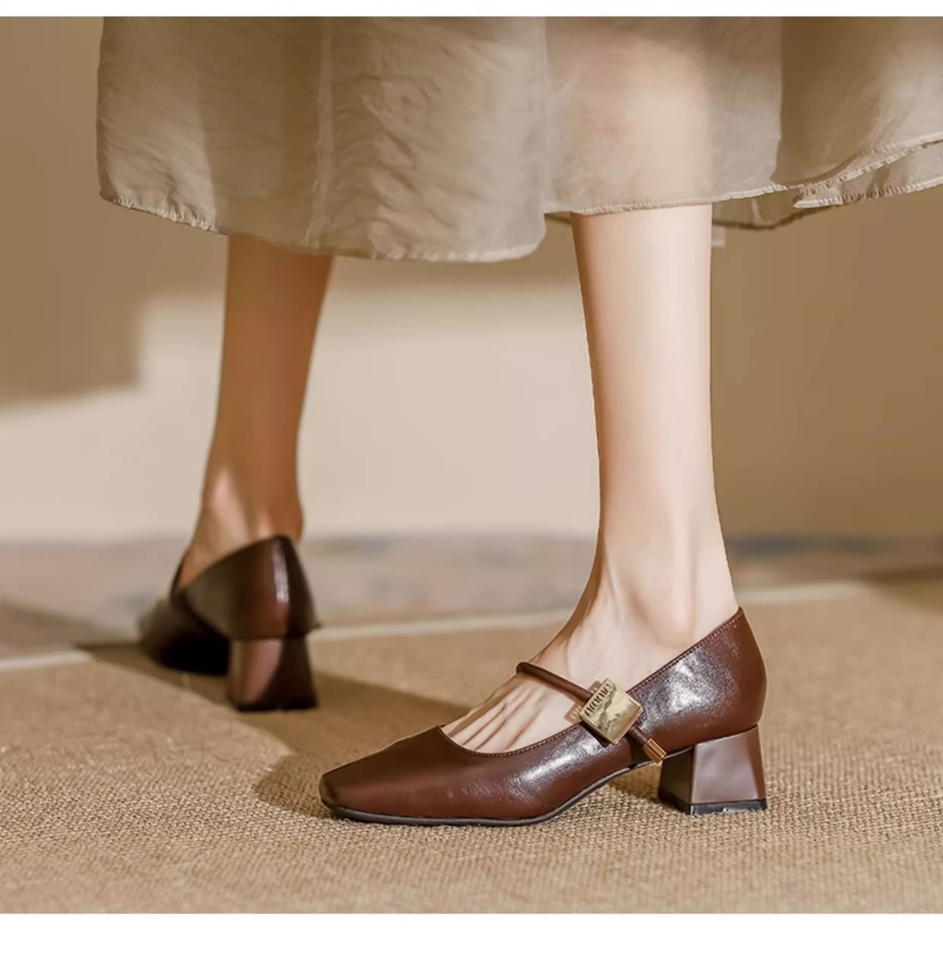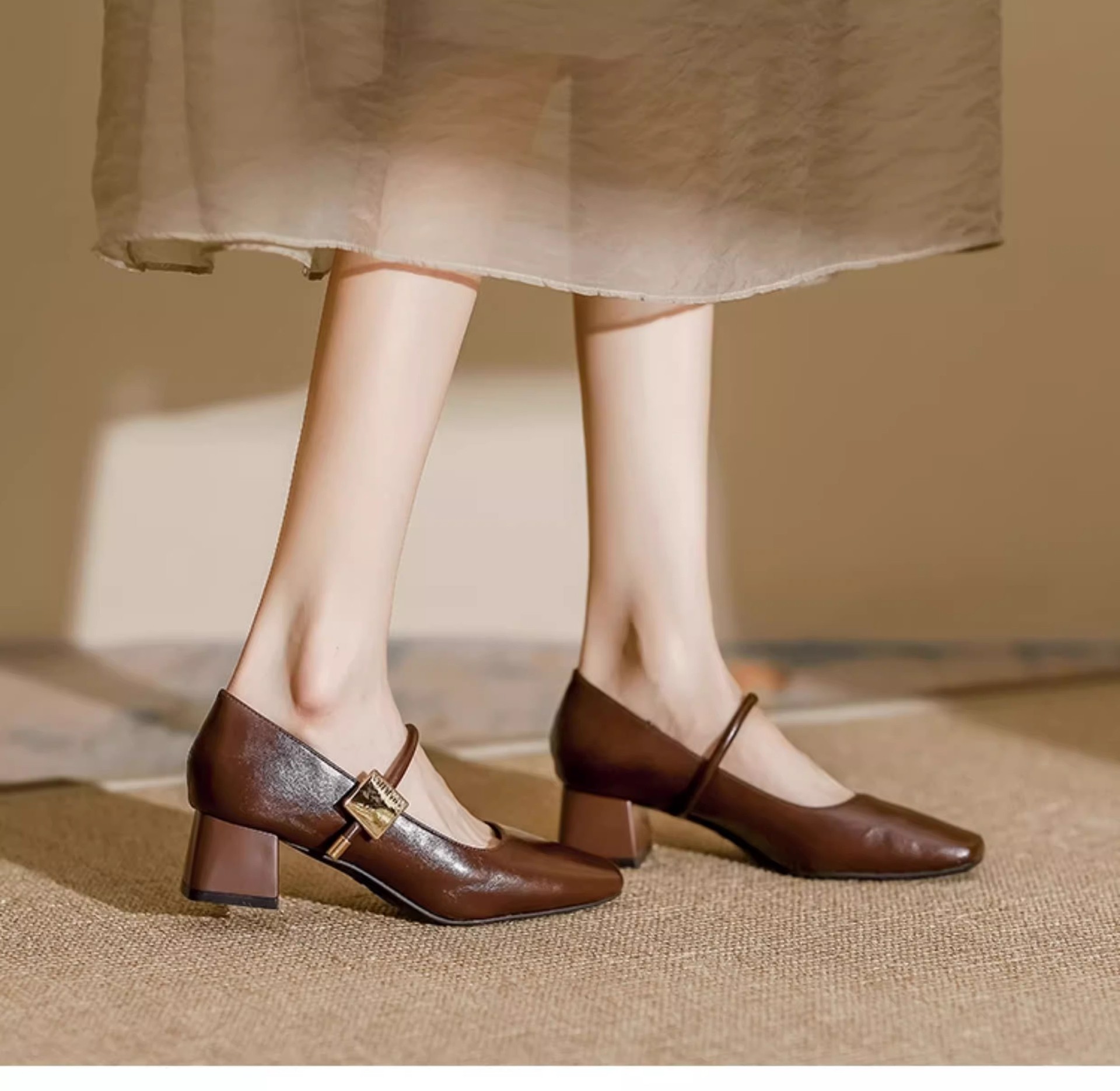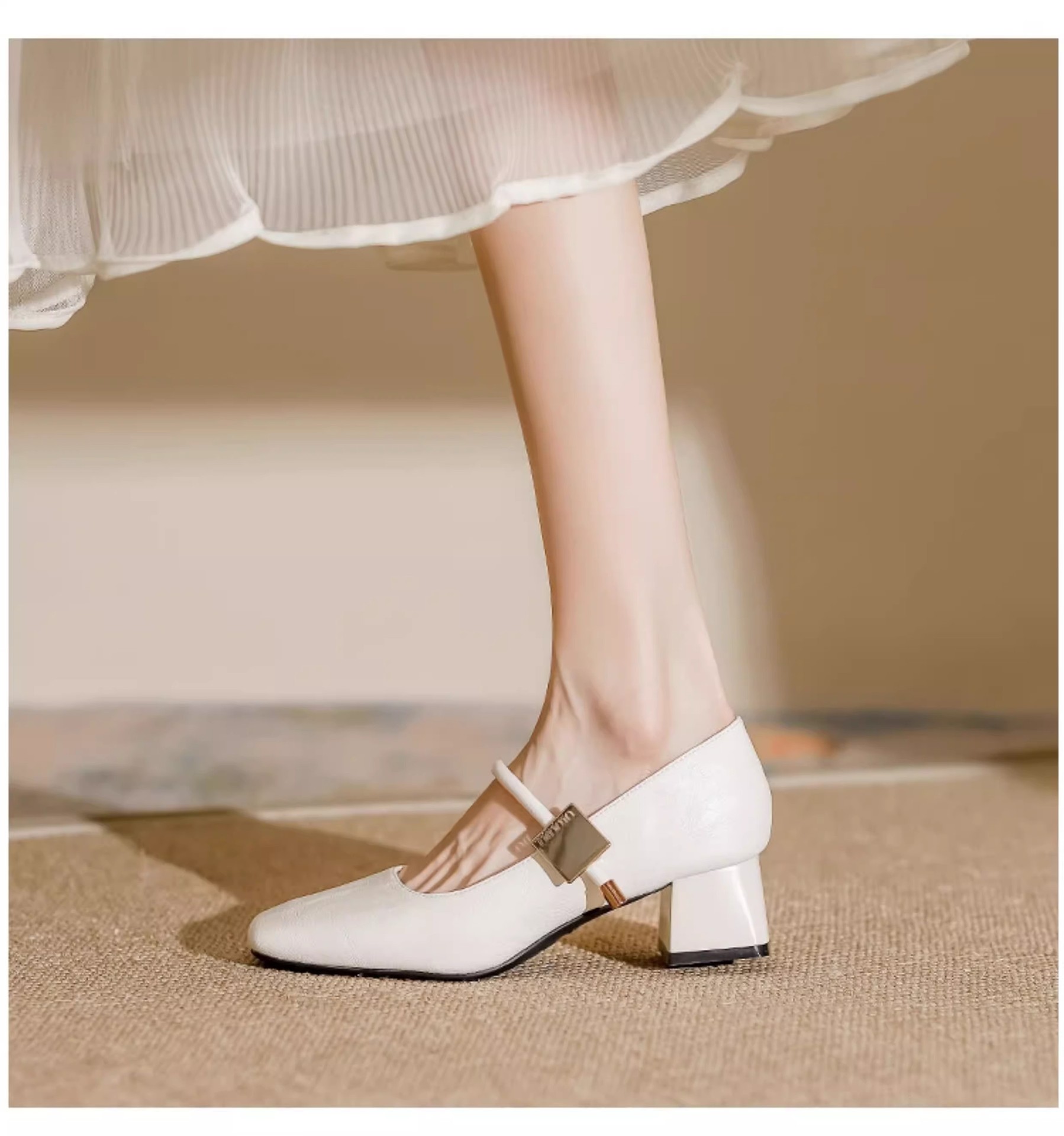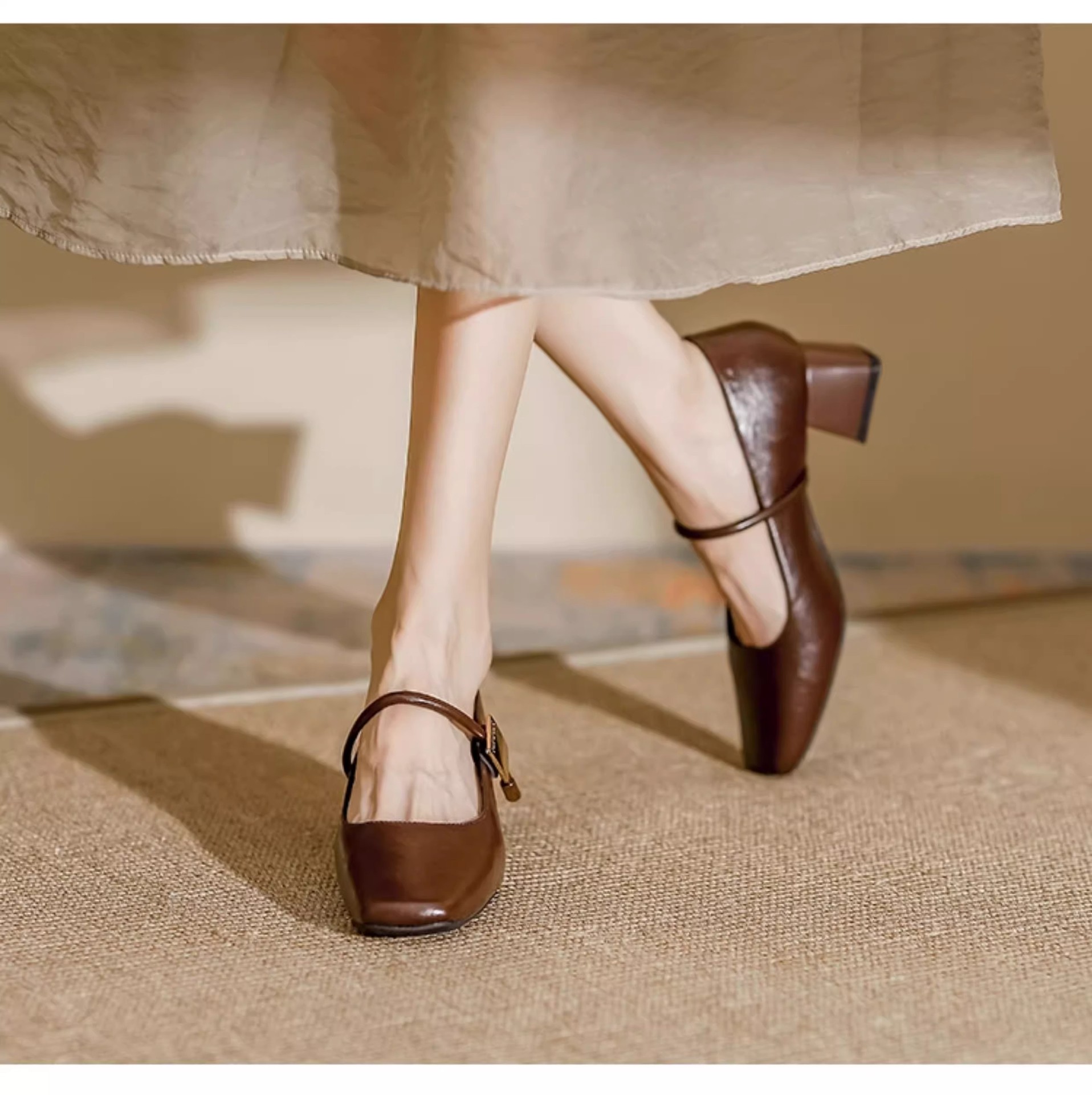 复古玛丽珍鞋女2025年新款气质方头粗跟单鞋配裙子软皮高跟鞋