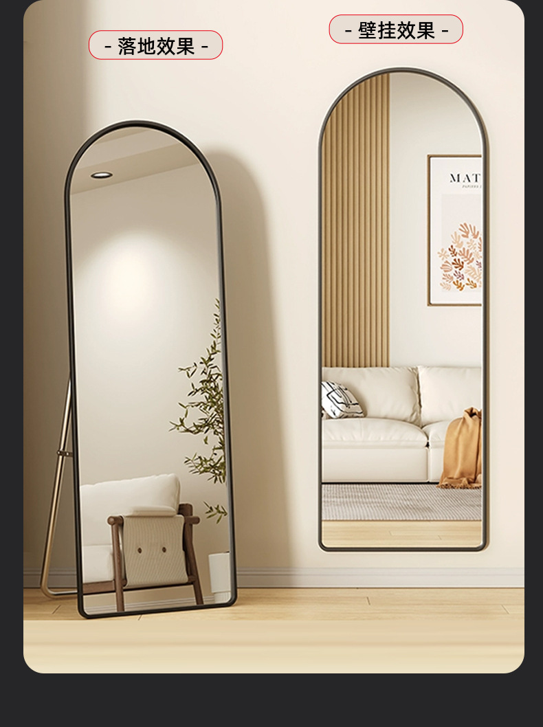 家用全身镜落地镜女生卧室壁挂大镜子轻奢拱形穿衣镜服装店试衣镜