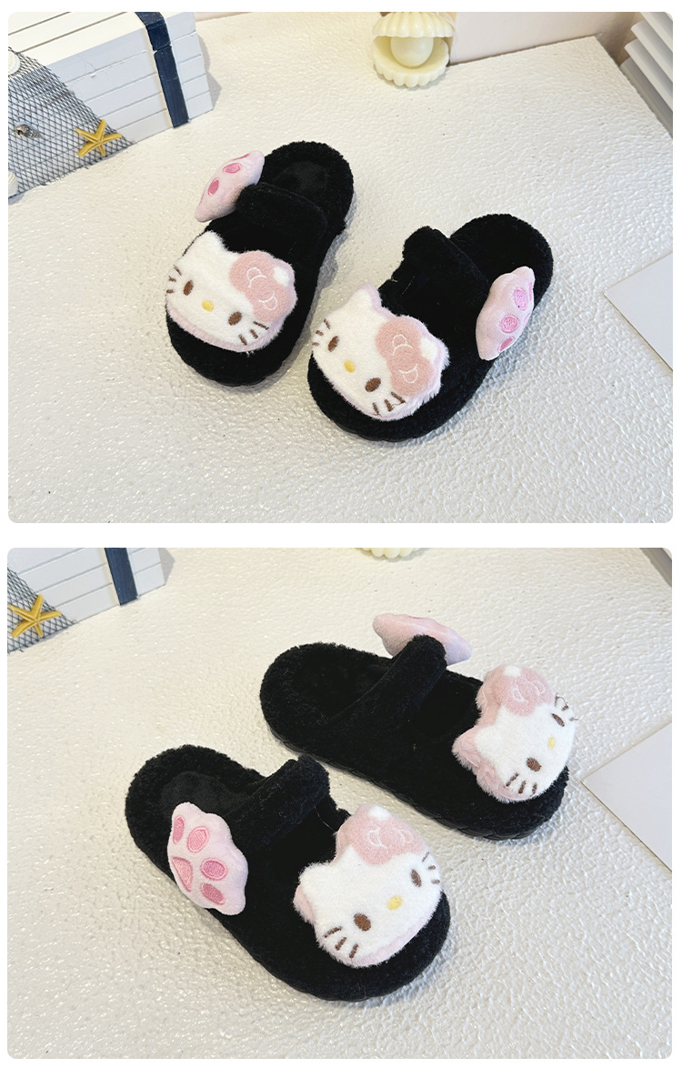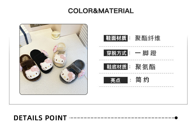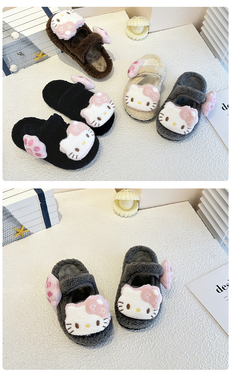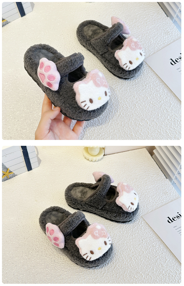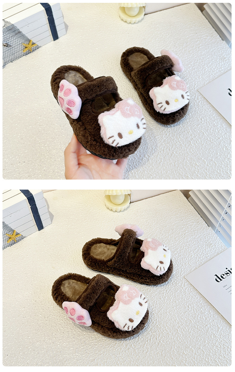 中大童可爱凯蒂猫毛毛拖鞋2025冬季新款女宝宝时尚百搭包头棉拖鞋