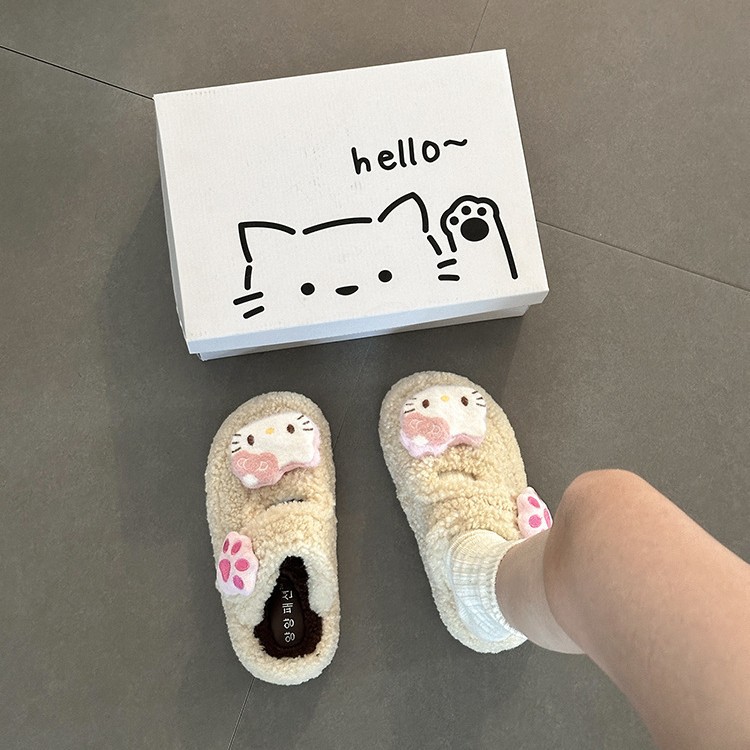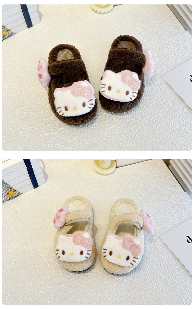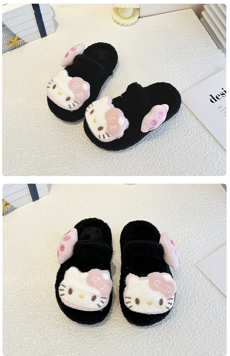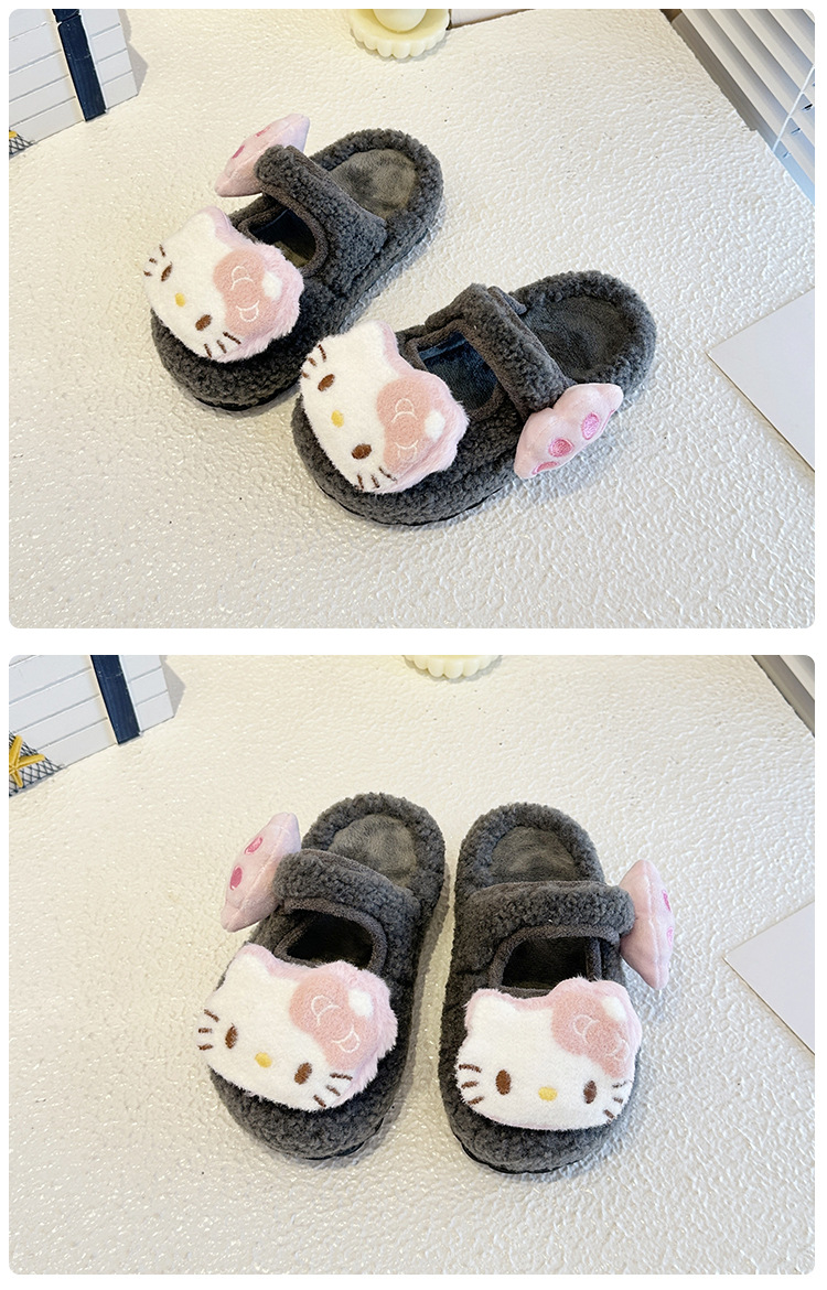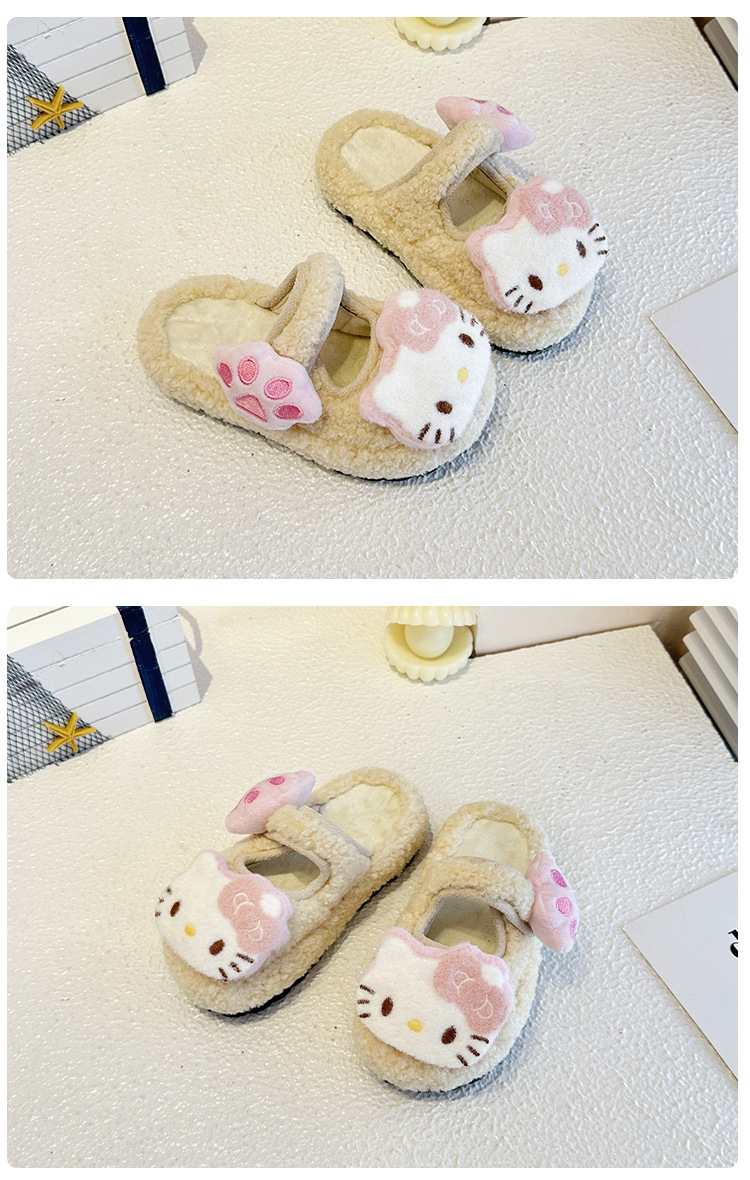 中大童可爱凯蒂猫毛毛拖鞋2025冬季新款女宝宝时尚百搭包头棉拖鞋