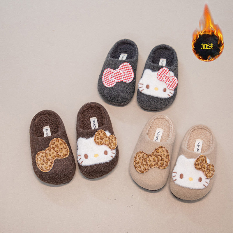 女童可爱卡通kt猫包头棉拖鞋2025秋冬款儿童宝宝室内保暖毛毛拖鞋