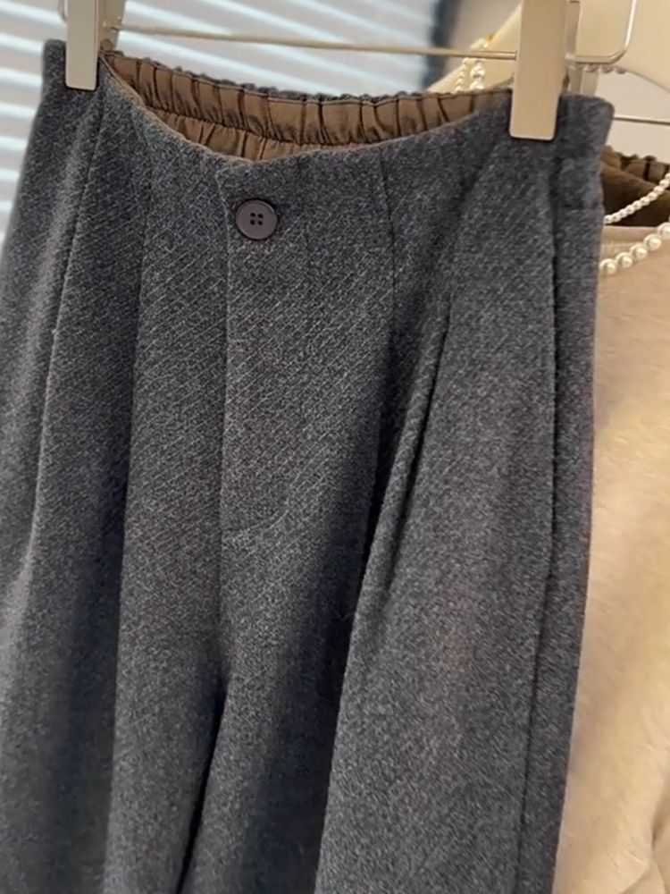 CHAO级推荐!灰色羊毛呢阔腿裤女秋冬保暖呢子裤柔软磨毛羊绒长裤