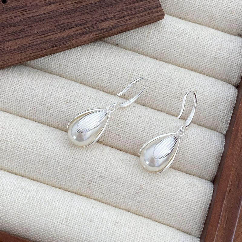2025日韩复古花苞耳钩女轻奢气质时尚个性小众设计感珍珠花朵耳饰