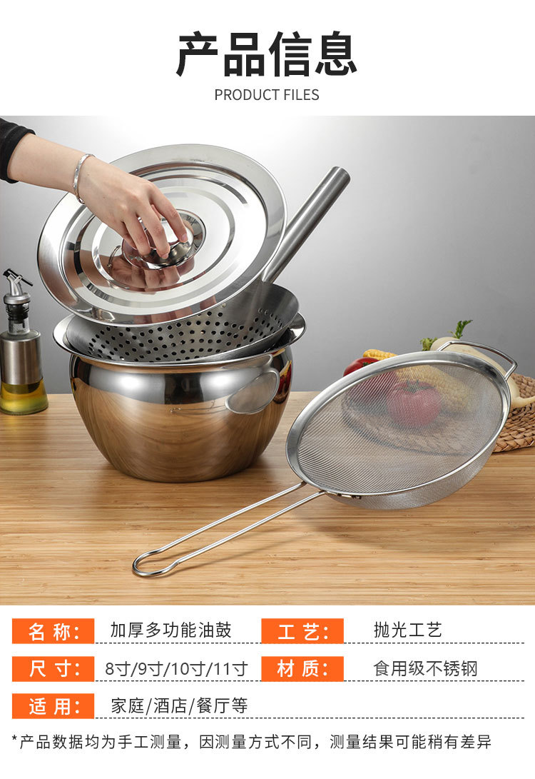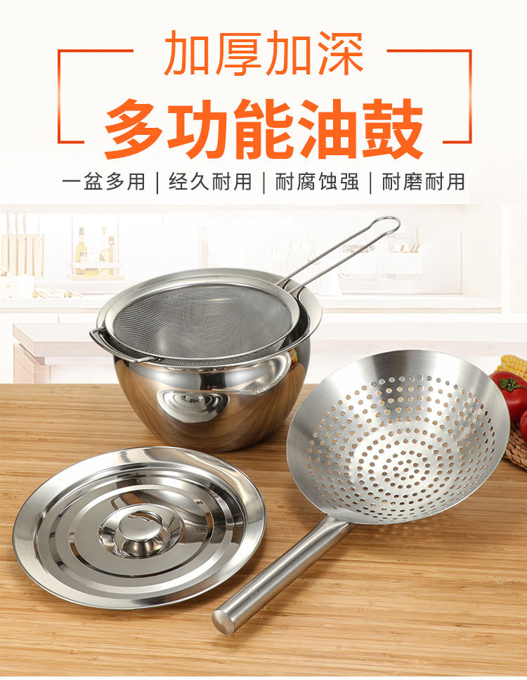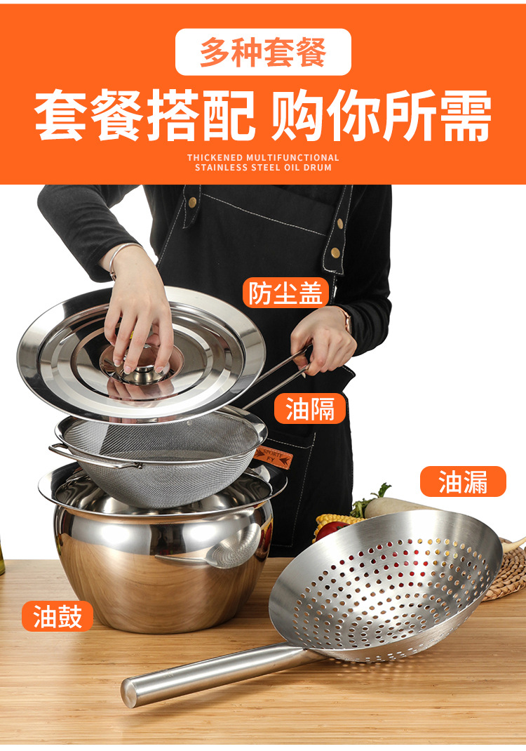 特价包邮加厚不锈钢滤油盆储油滤油加大加深油鼓耐高温带盖猪油罐