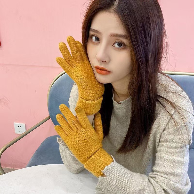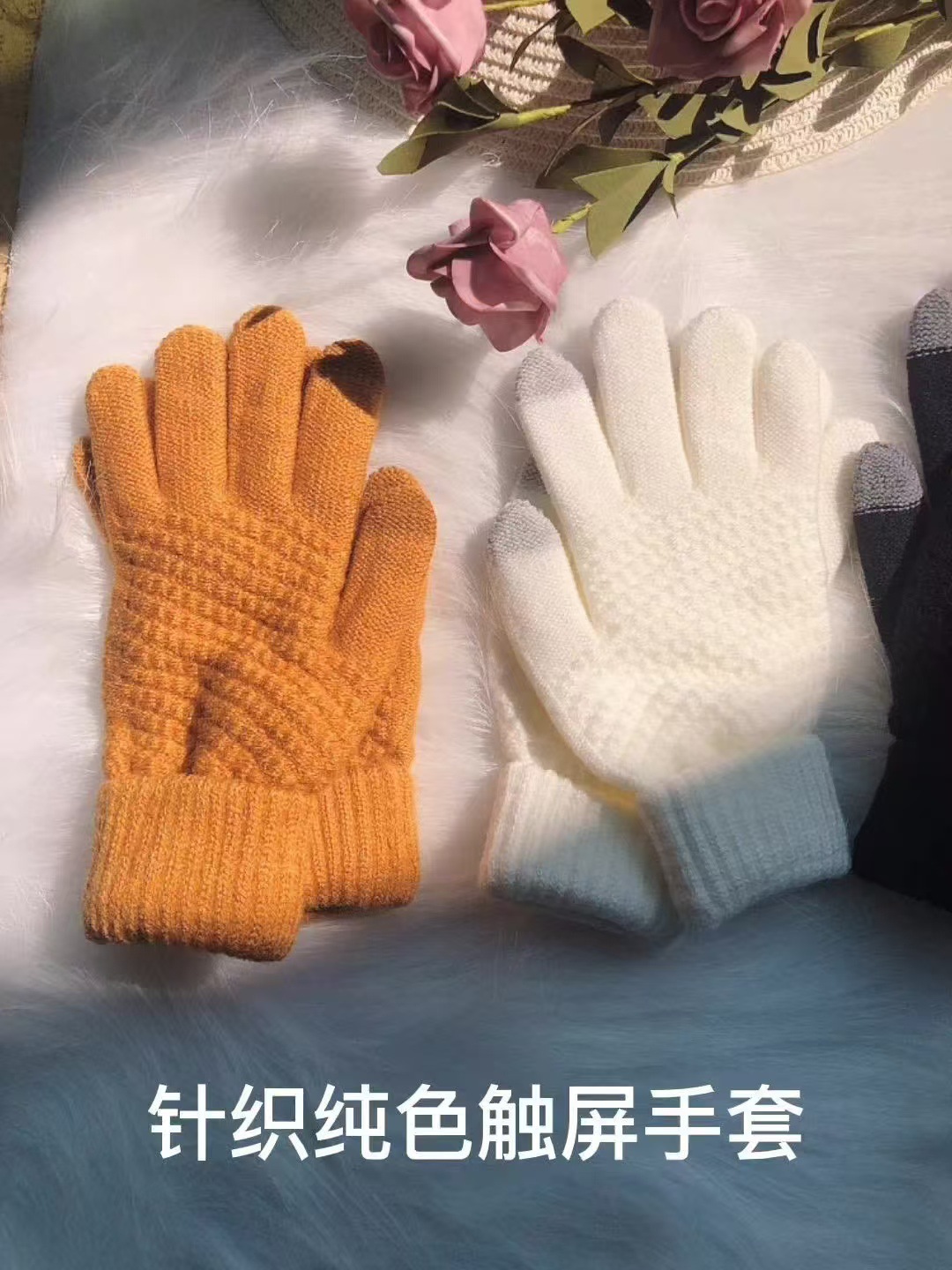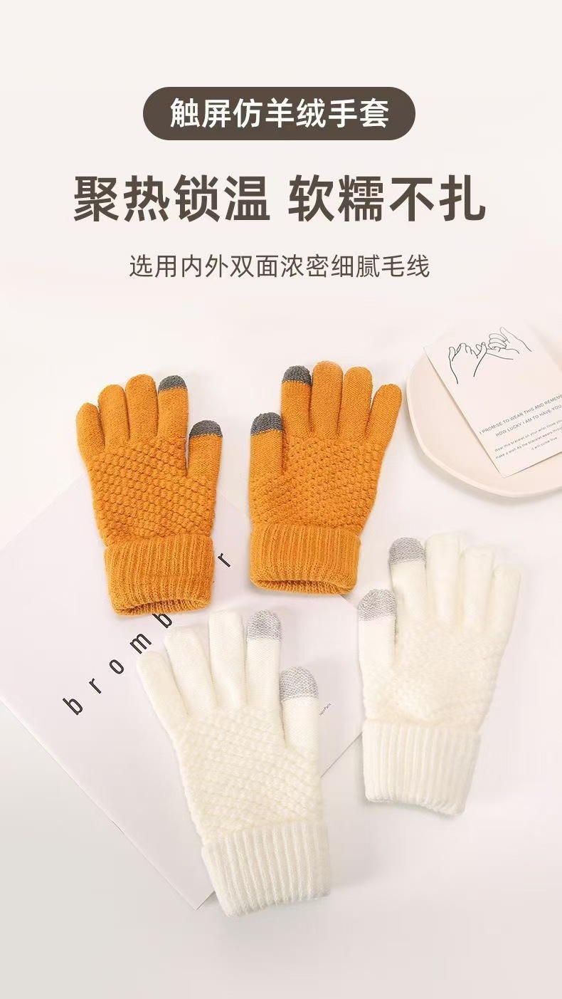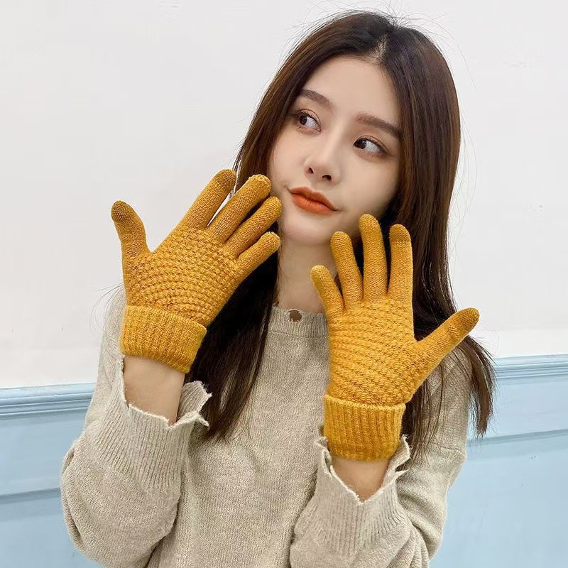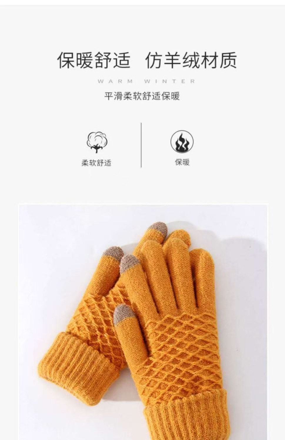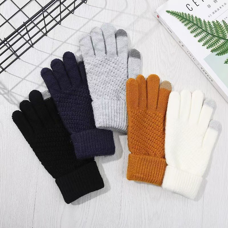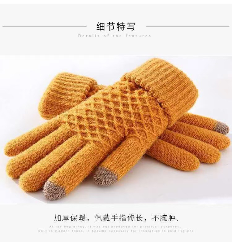 新款加厚触屏手套男女士秋冬季保暖防寒户外骑行针织毛线手套批发