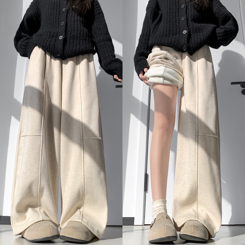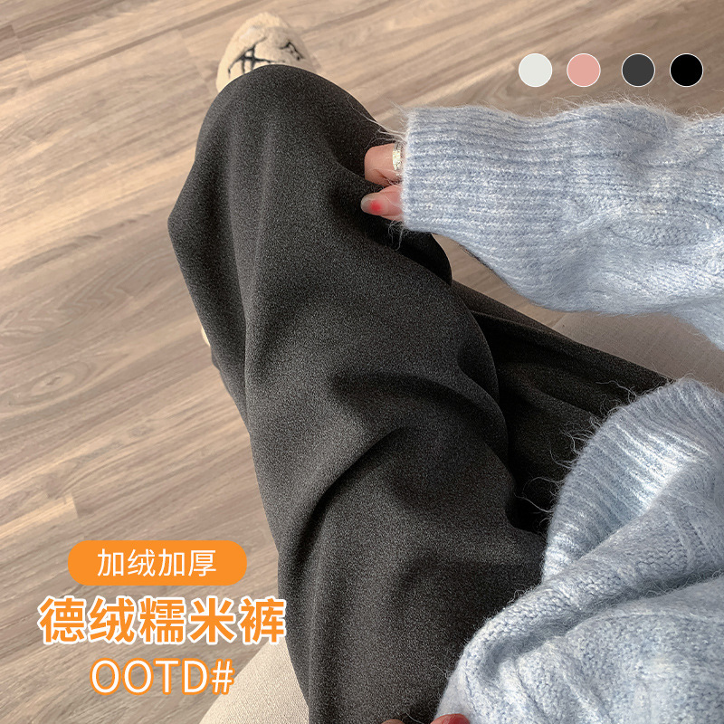 德绒糯米裤女秋冬新款高腰宽松垂感加绒加厚休闲德绒阔腿裤H1063