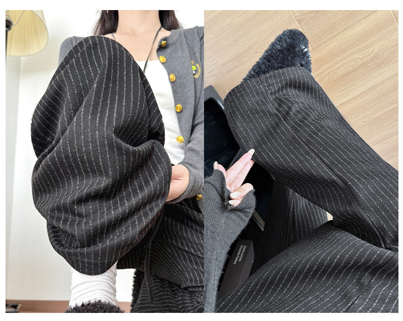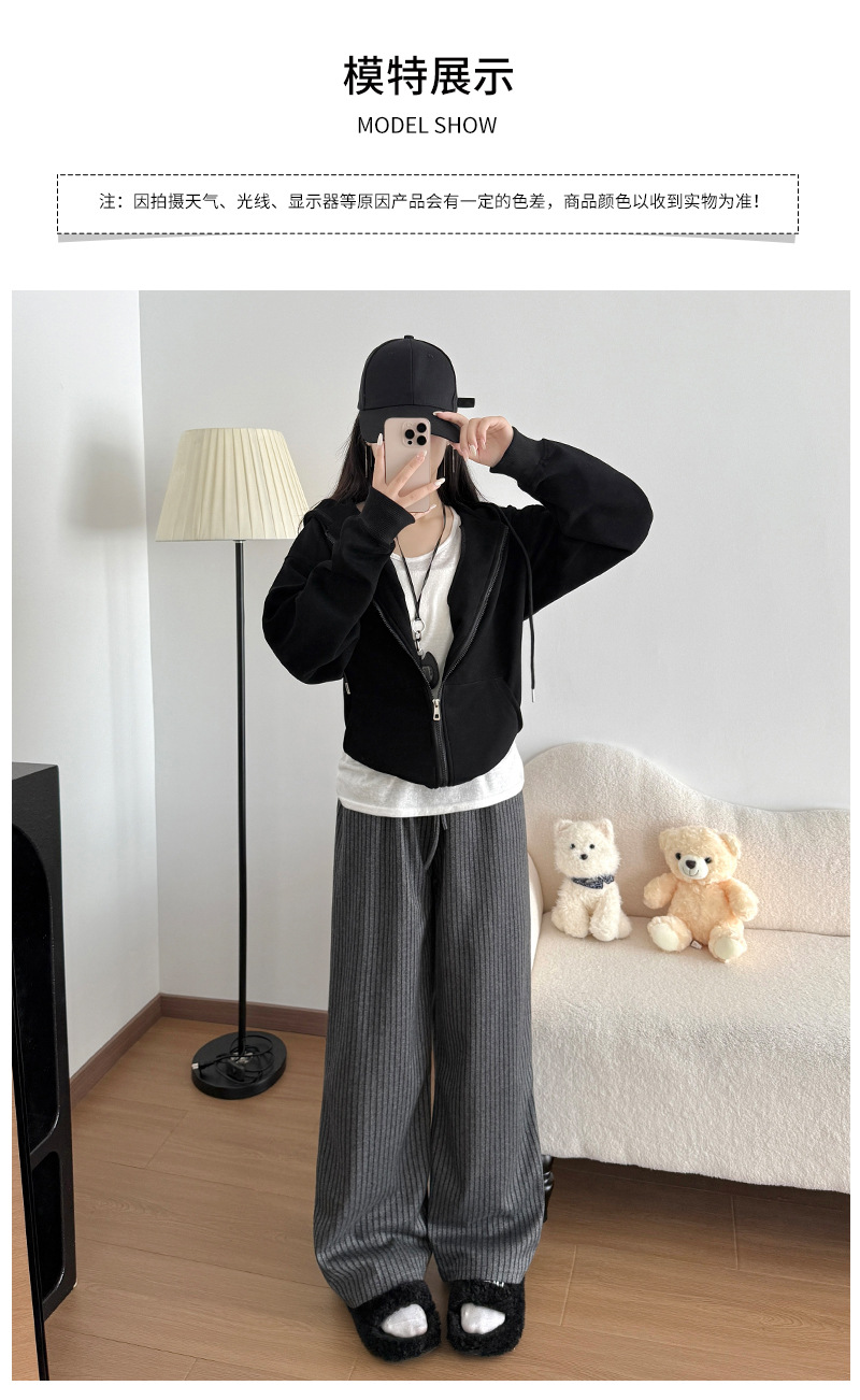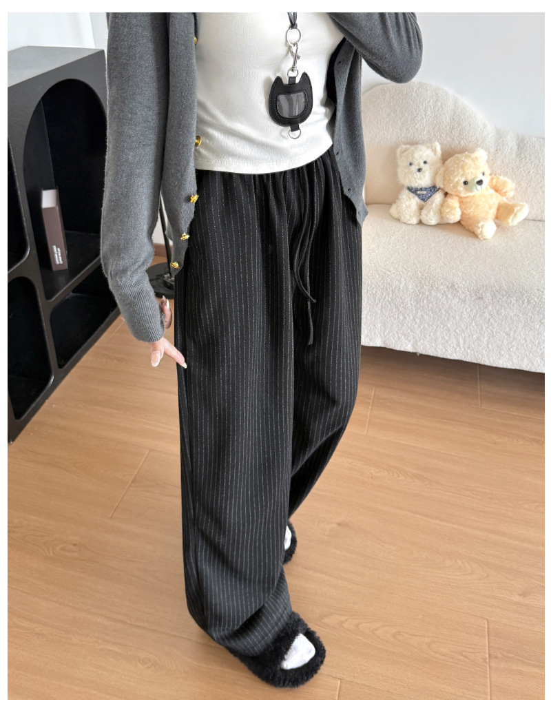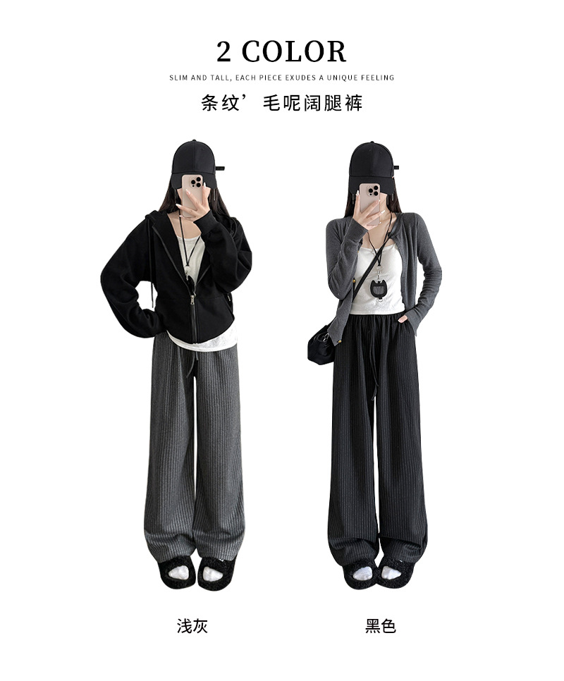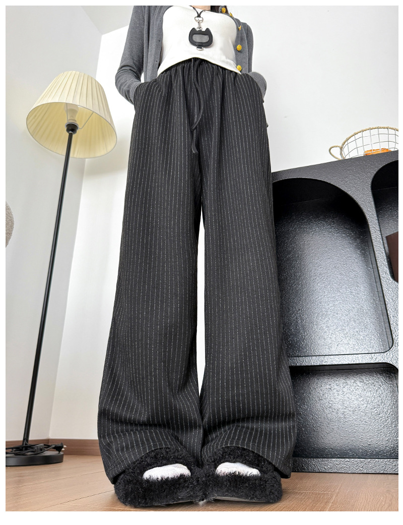 慵懒风摇粒绒条纹阔腿裤女秋冬宽松百搭高腰垂坠感显瘦休闲直筒裤