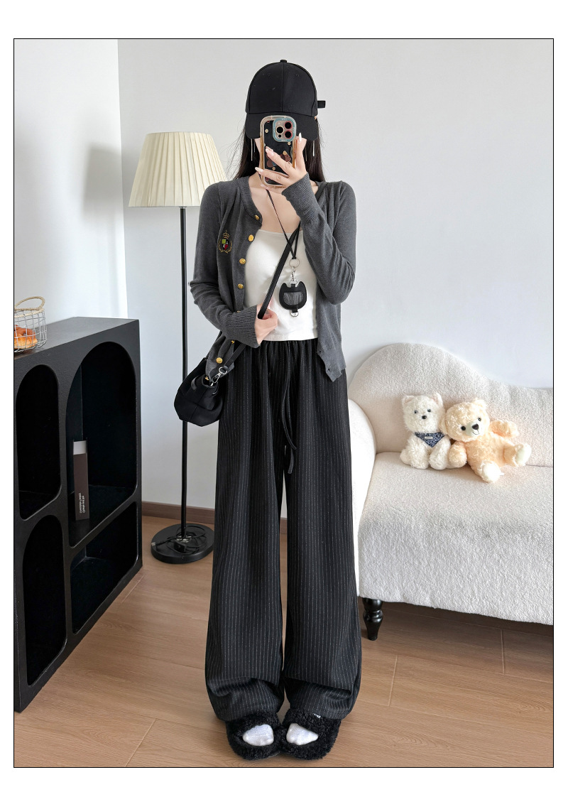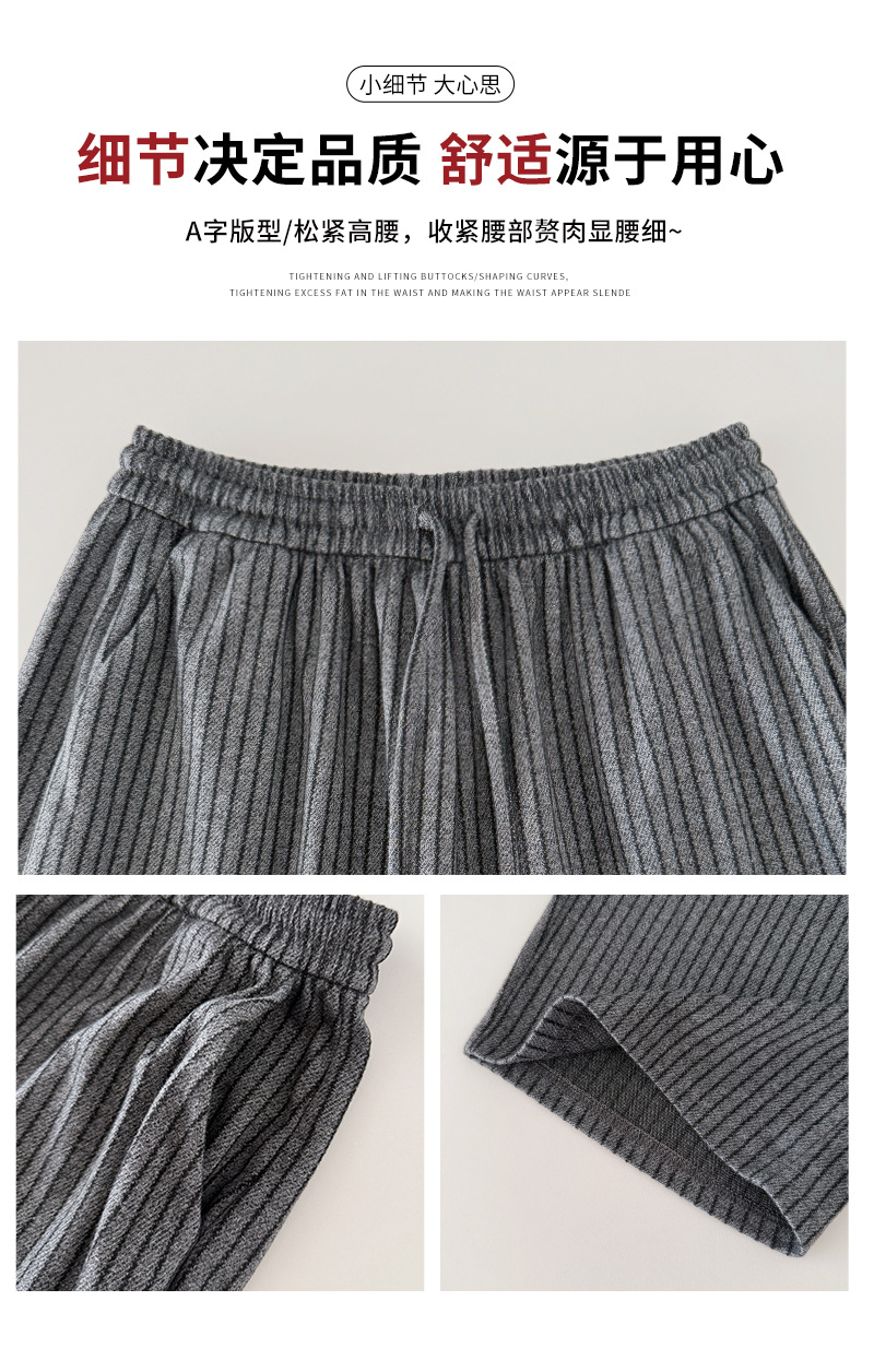 条纹毛呢西装休闲裤春秋慵懒高级垂感高腰直筒显瘦松弛感阔腿长裤
