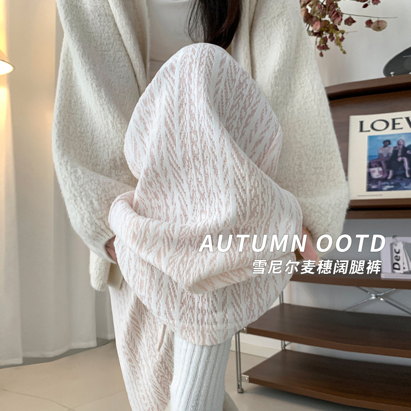 慵懒风雪尼尔麦穗阔腿休闲裤女秋高腰宽松垂感显瘦直筒针织拖地裤