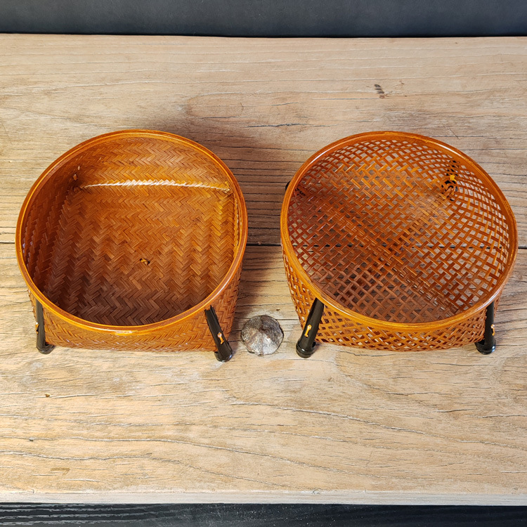 竹编大漆篮子收纳竹筐竹编手工艺篮子竹制品茶具收纳篮点心盒竹筐