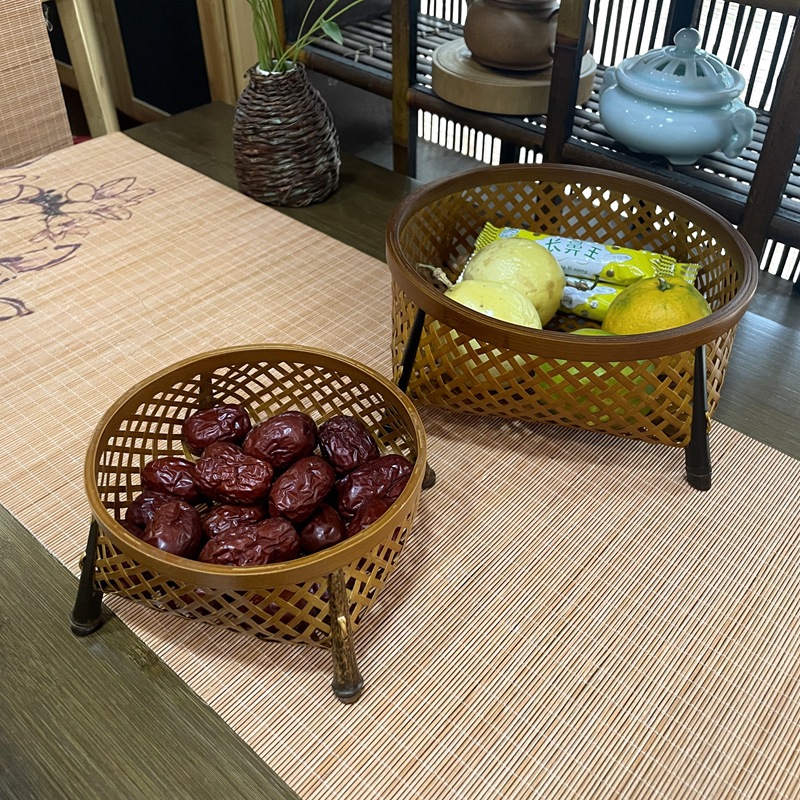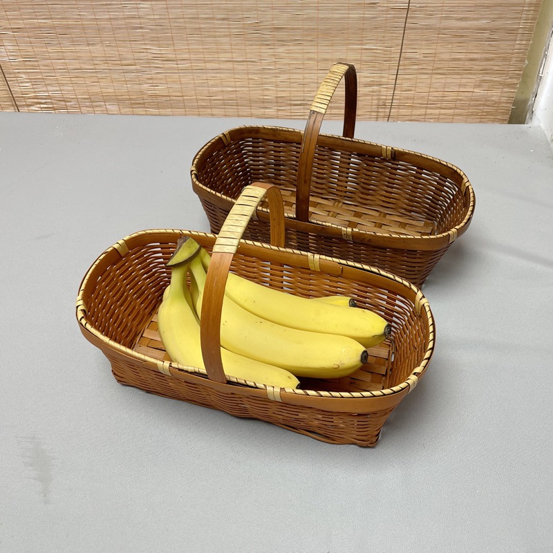 复古竹编篮收纳筐手工编织水果篮茶几零食茶具收纳筐中式野餐提篮
