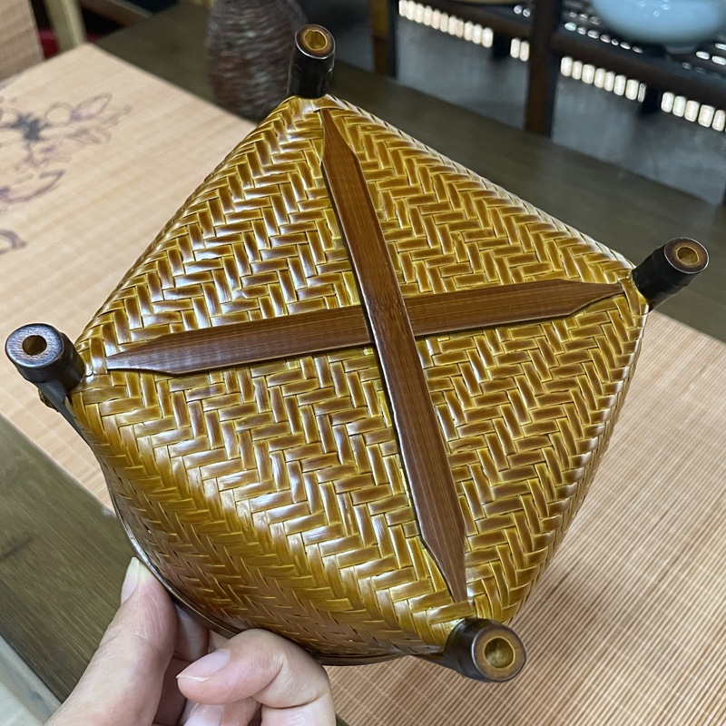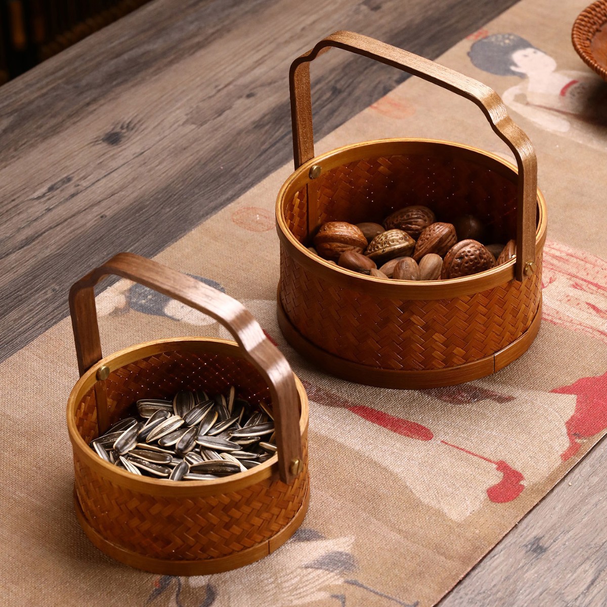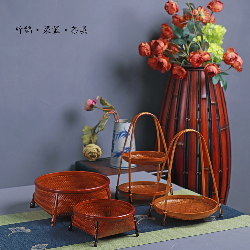 竹質工芸品手作り竹編大漆バスケット新中国式家庭用リビングルーム収納バスケットレトロ茶器収納バスケット
