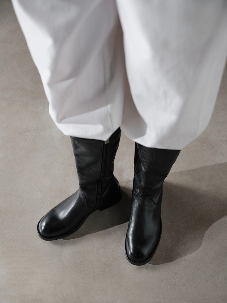 欧米風ワイドブーツ女性カジュアルブーツ秋冬新商品本革レトロ角頭スリーブ低ヒール女性用ミドルブーツ